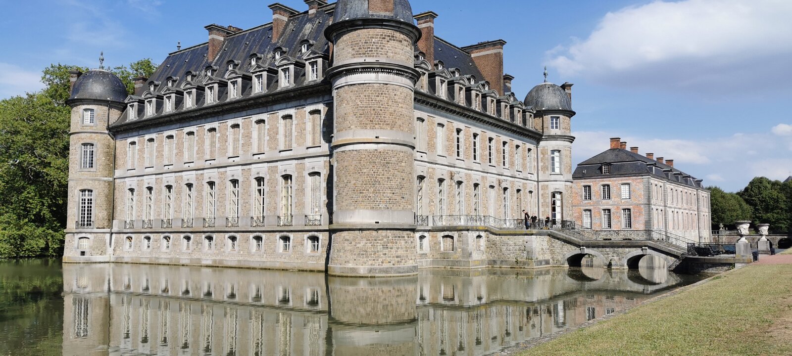 Beloeil castle was built between the 14th and 18th centuries. The building was destroyed by fire in 1900 and rebuilt in its 17-18th century appearance. AntwerpBrugge Labels