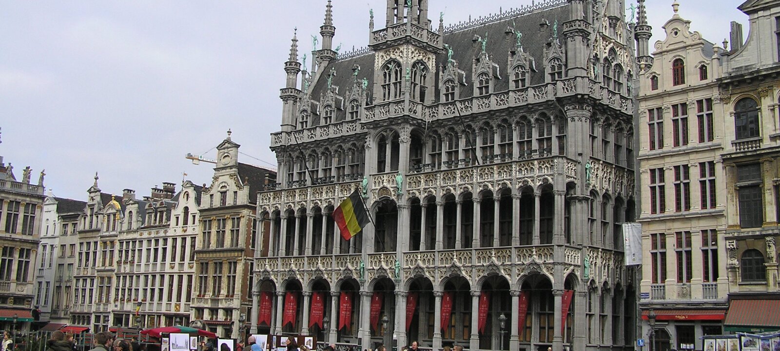 Townhall. Grand place (main square).Originally built ca. 1300, flattened by the French army in 1695, rebuilt in the following few years. Townhall. Townhall. Arcade of the king's house. Guild houses. Brussels' guilds helped to rebuild the grand place after the 1695 destruction. Townhall. Townhall. King's house. Townhall by night. Townhall. AtomiumSpecialty shops Labels