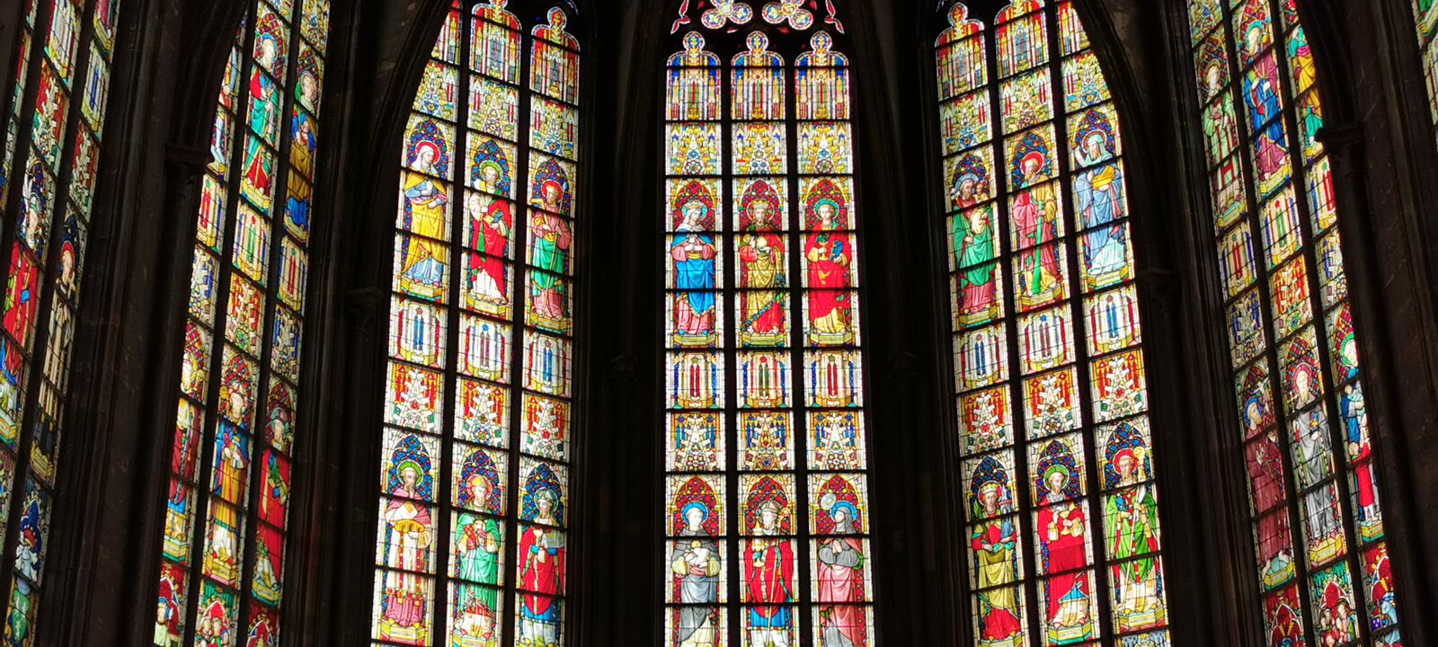 Saint Jacques church, 13th century, with a choir from 1368. Kota reliquaries from Gabon. Grand Place Labels