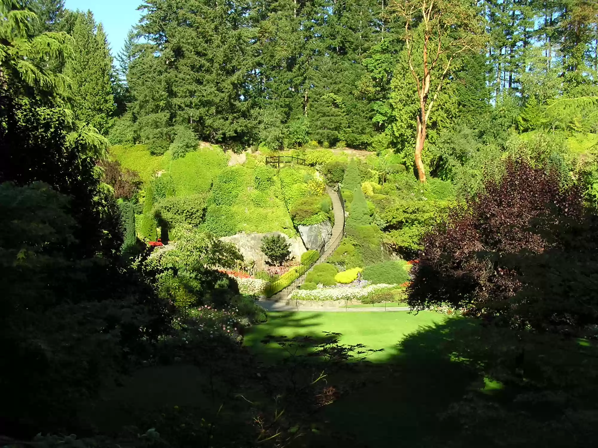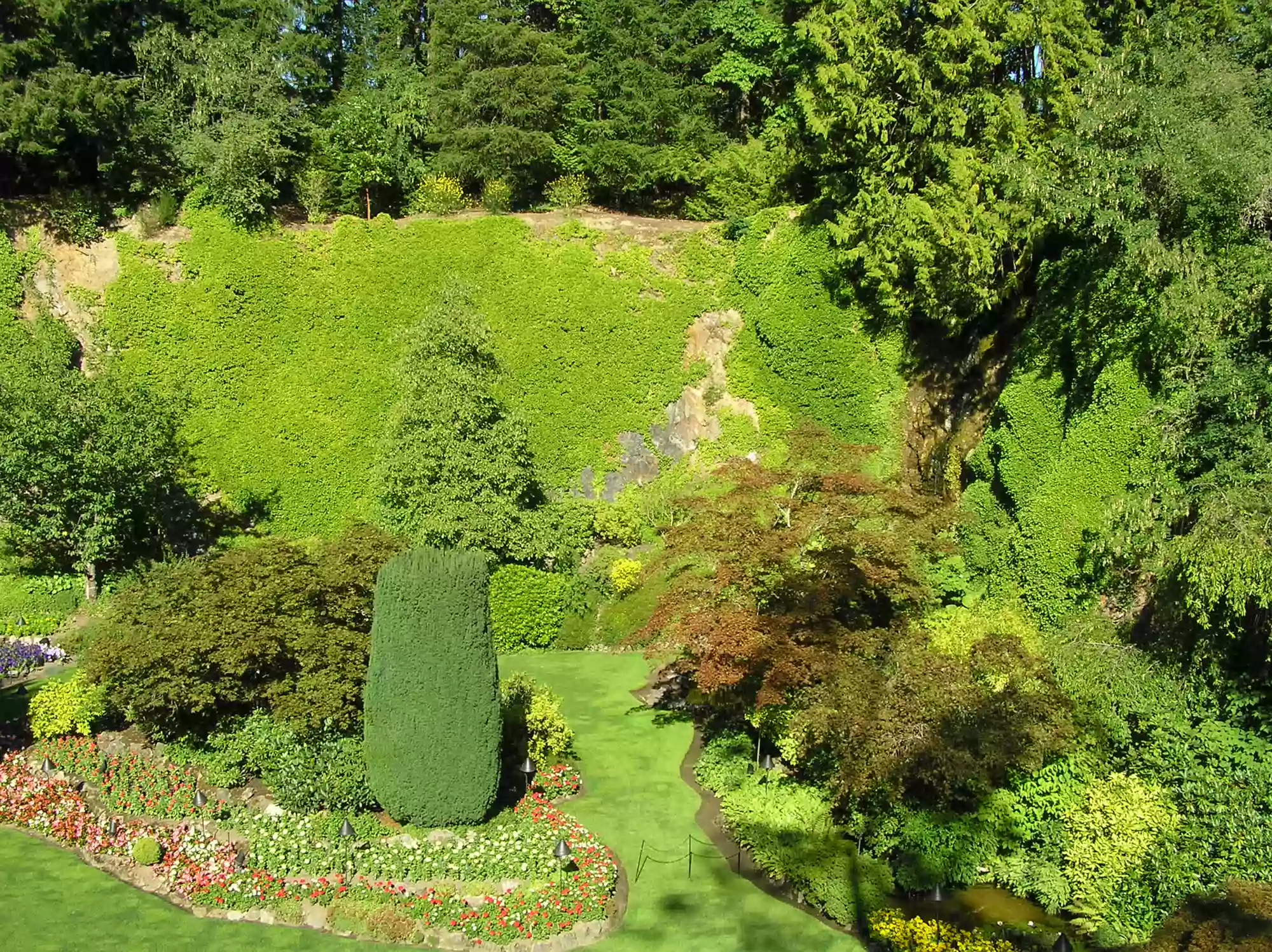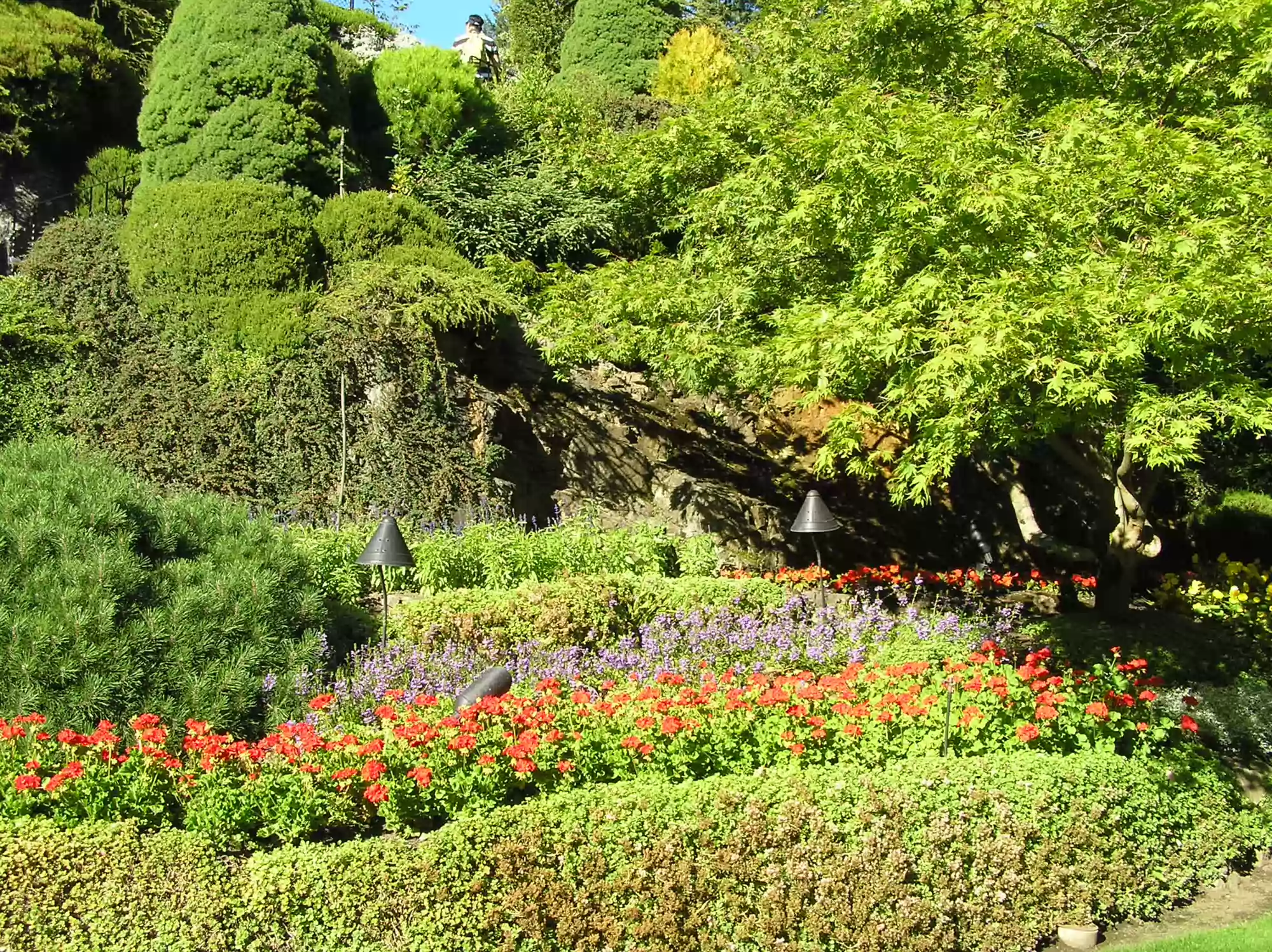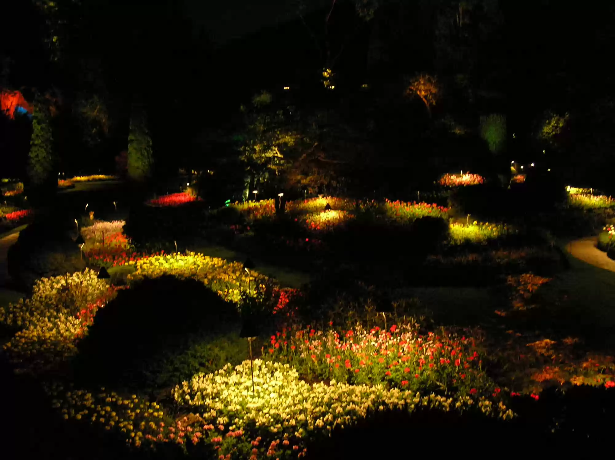 The Burtchart gardens were started in the early 20th century by the Burtchart family, who was operating a cement factory there. Garden entrance. Garden entrance. Garden entrance. Garden at night. Sunken garden: 1912-1921. Created in a depleted quarry by Mrs. Butchart. Sunken garden. Sunken garden. Sunken garden. Sunken garden. Sunken garden. Sunken garden. Sunken garden at night. Behind the sunken garden. Eagle with salmon, orca, bear with salmon, 2004. Totem pole carved in contemporary Coast Salish style by Doug LaFortune from the Tsawout First Nation. Rose garden. Rose garden. Islands Labels