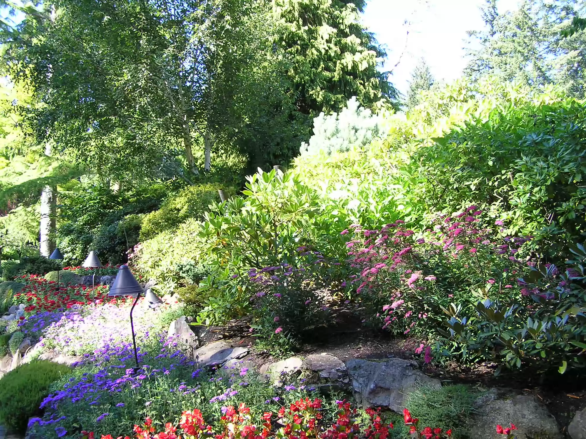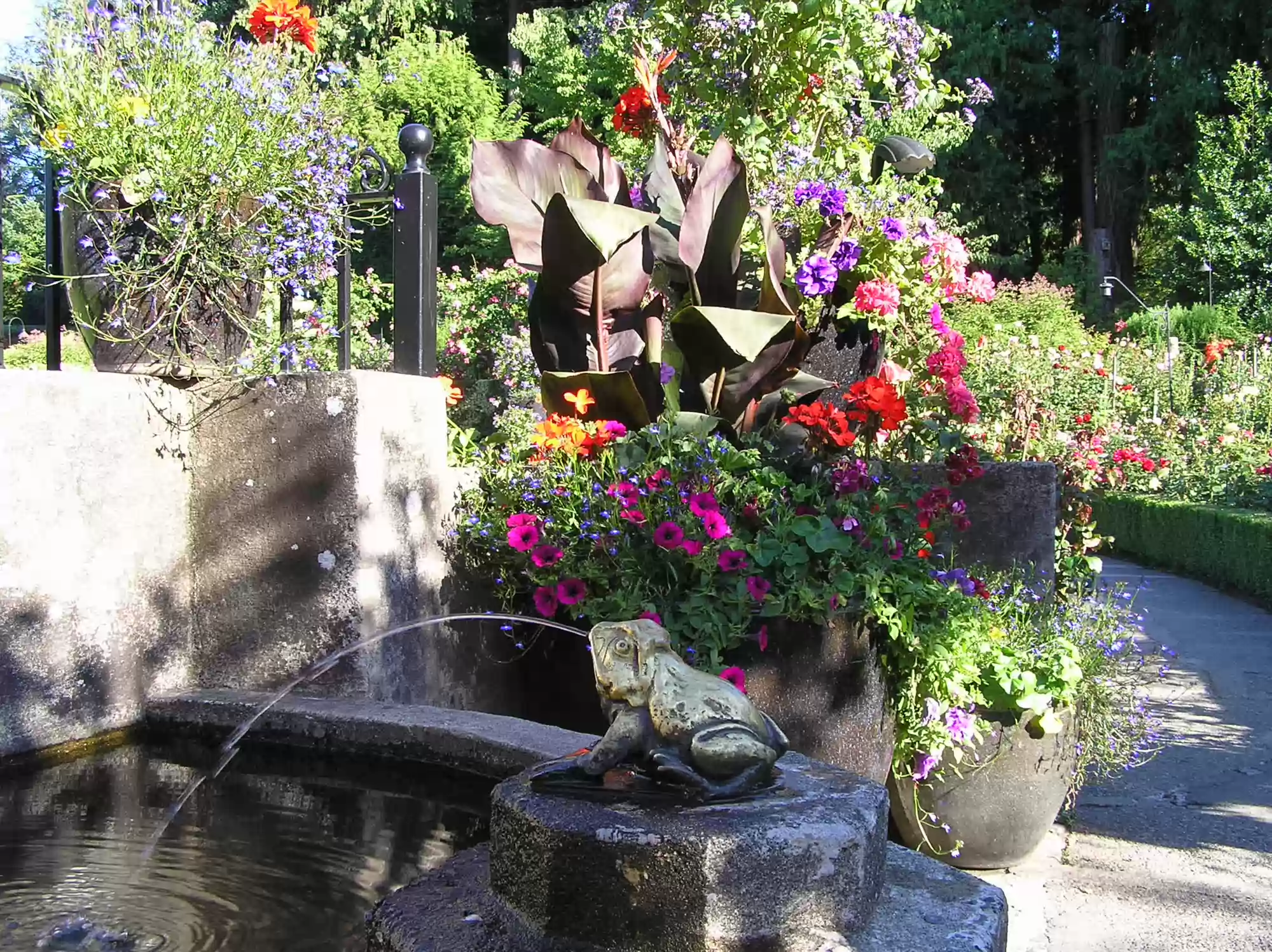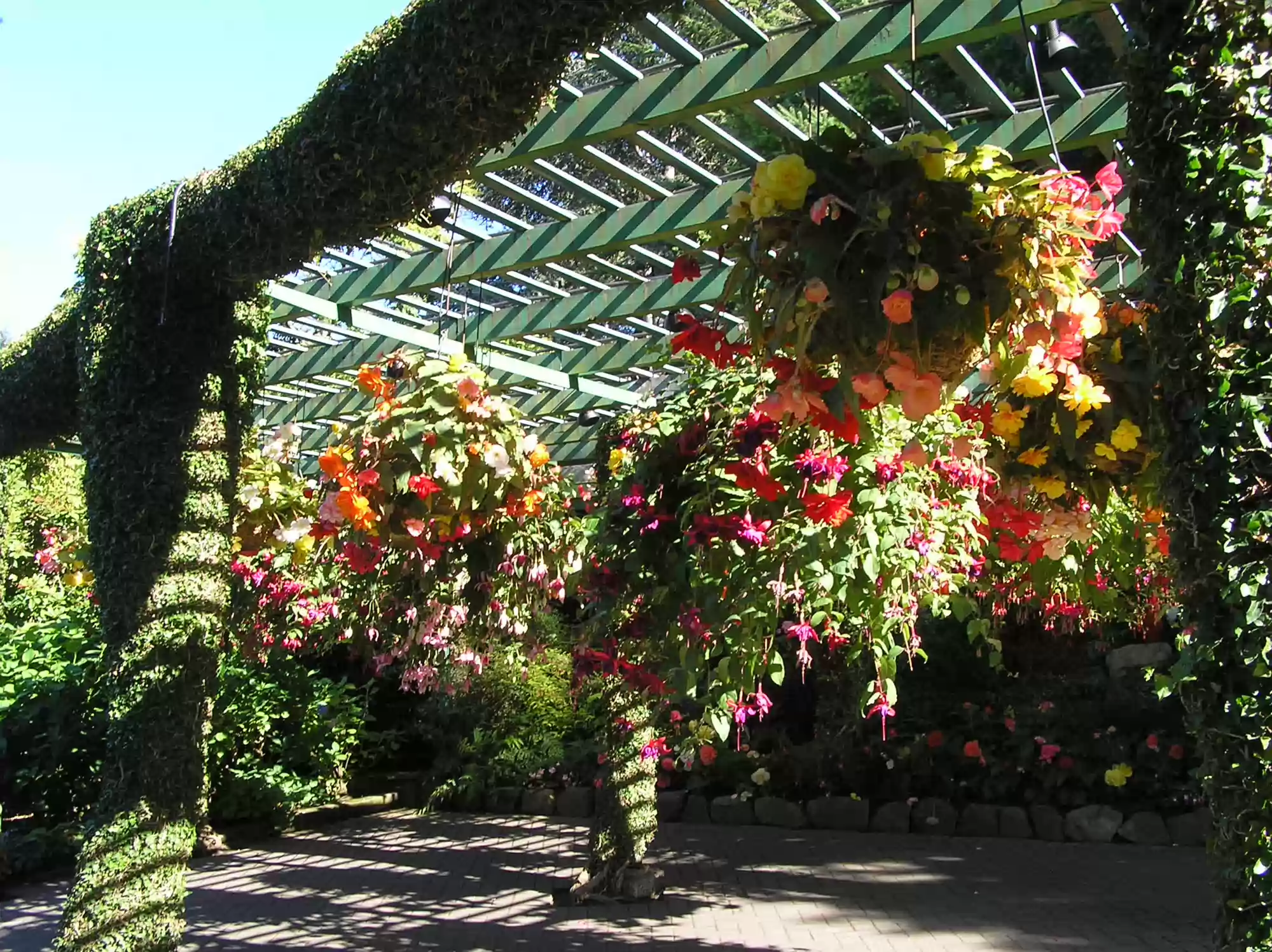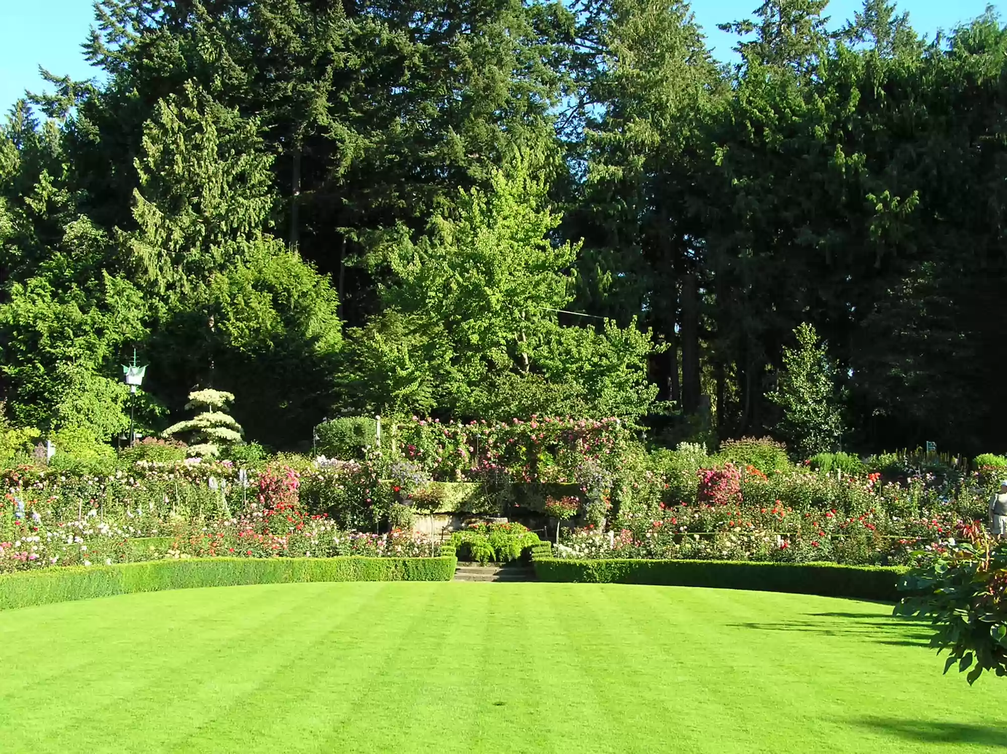The Burtchart gardens were started in the early 20th century by the Burtchart family, who was operating a cement factory there. Garden entrance. Garden entrance. Garden entrance. Garden at night. Sunken garden: 1912-1921. Created in a depleted quarry by Mrs. Butchart. Sunken garden. Sunken garden. Sunken garden. Sunken garden. Sunken garden. Sunken garden. Sunken garden at night. Behind the sunken garden. Eagle with salmon, orca, bear with salmon, 2004. Totem pole carved in contemporary Coast Salish style by Doug LaFortune from the Tsawout First Nation. Rose garden. Rose garden. Islands Labels