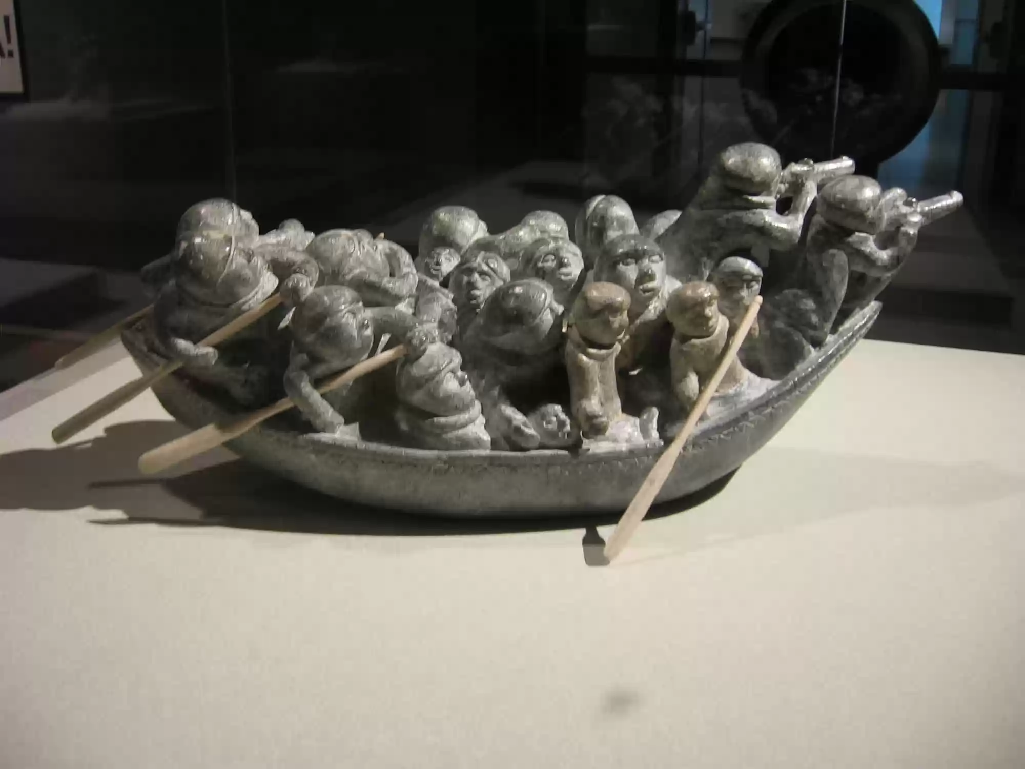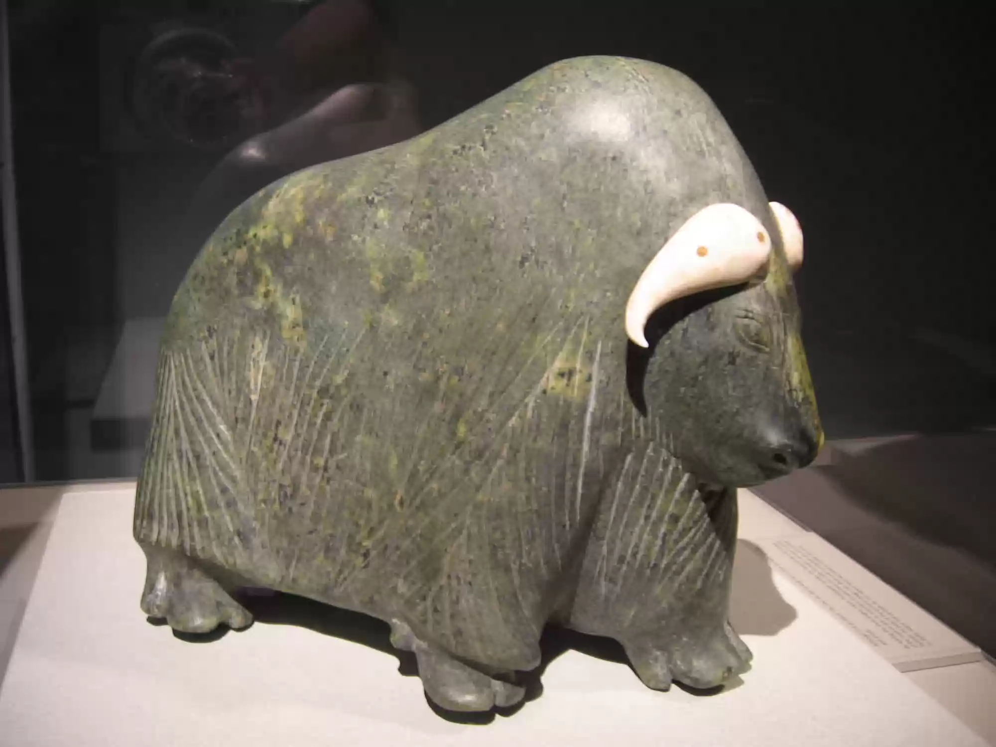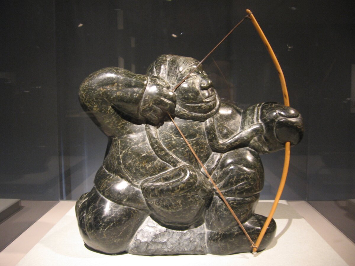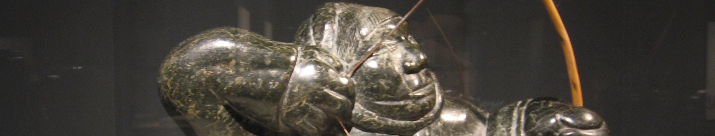 Flying shaman, 1972, Nunavut The migration, 1964, Nunavik, QC Hunter, 1965, Nunavik, QC Bull, 1968, Nunavut Flying birds, 1960, Nunavut A woman and her child with a bear cub, 1965, Nunavik, QC Mont-Royal parkOld town Labels