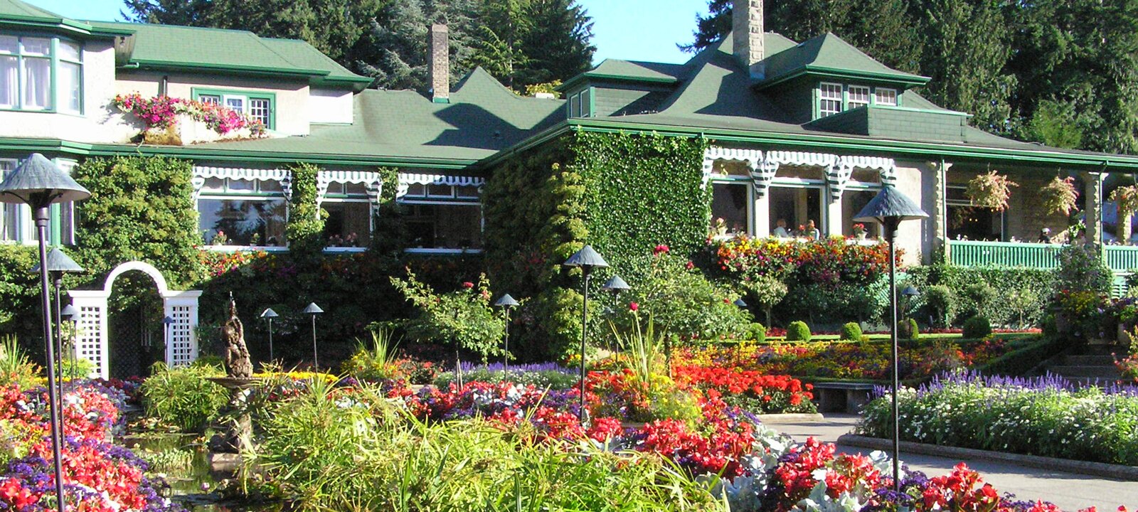 Sunken garden: 1912-1921. Created in a depleted quarry by Mrs. Butchart.