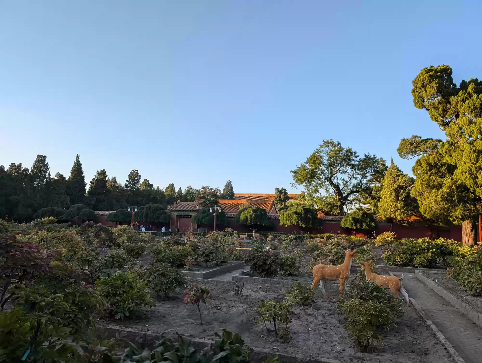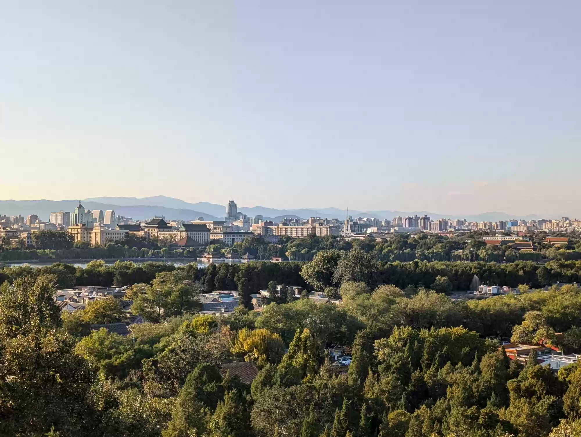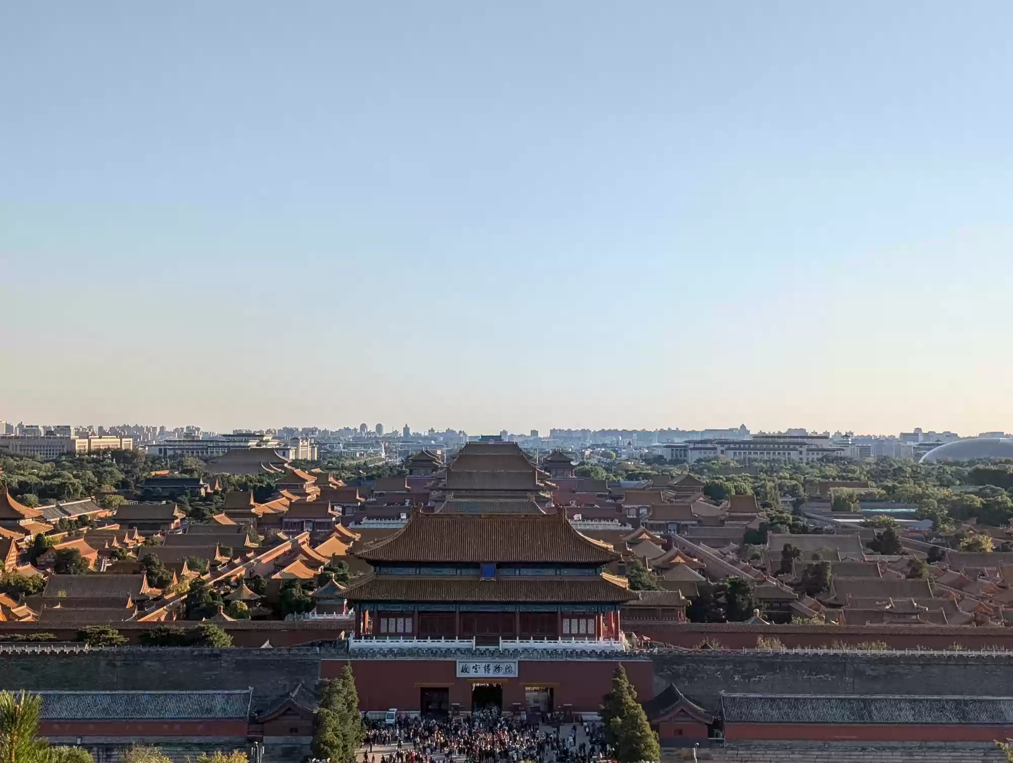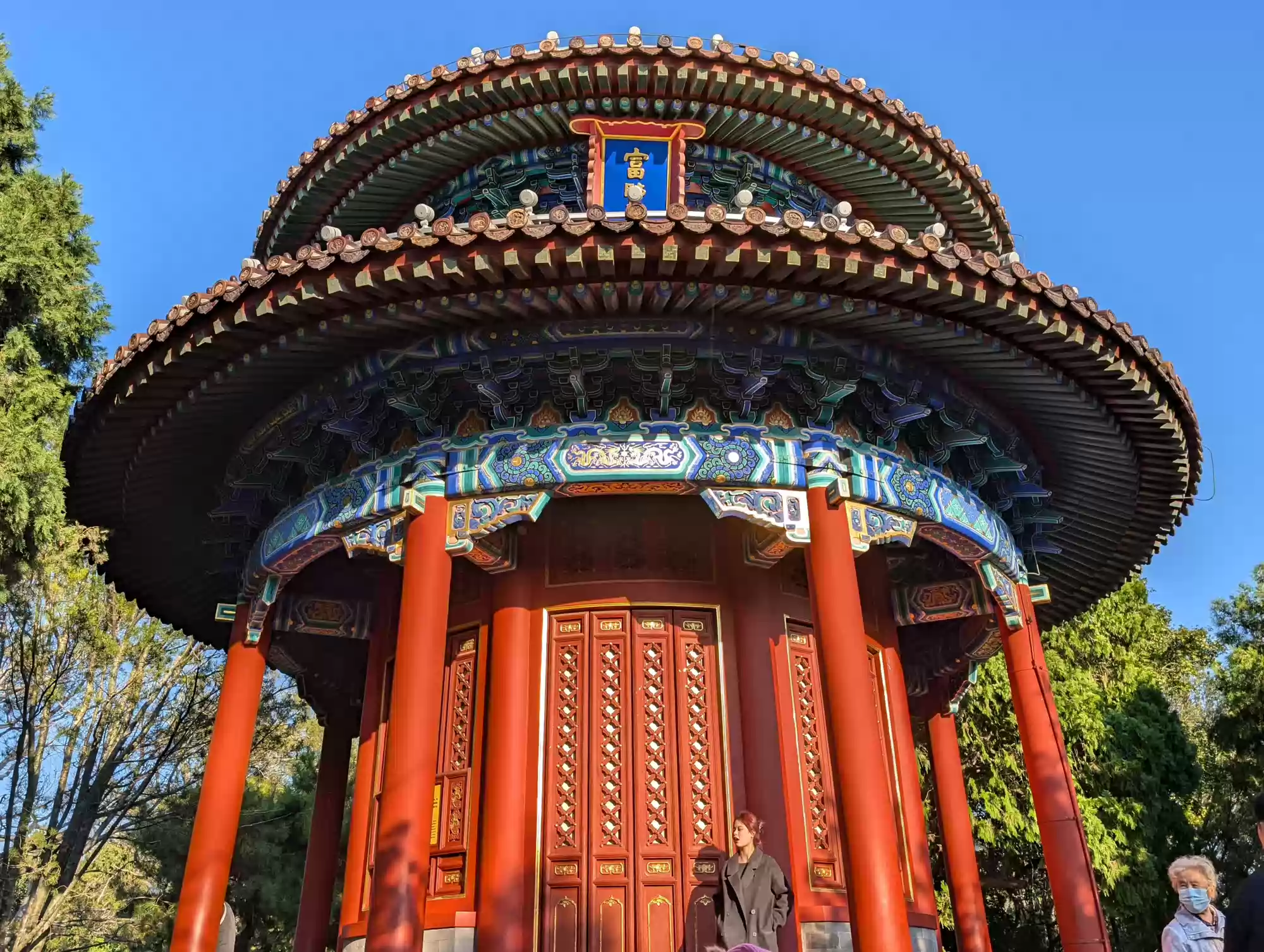 Jingshan Park, an imperial garden previously part of the Forbidden City. The manmade hill was built with earth excavated to dig the Forbidden City moats. Forbidden City moat. Fulan Pavilion, 1750. Originally a Buddhist temple. Forbidden City. Guanmiao pavilion, 1750. Zhoushang pavilion, 1750. Treasure gallery Labels