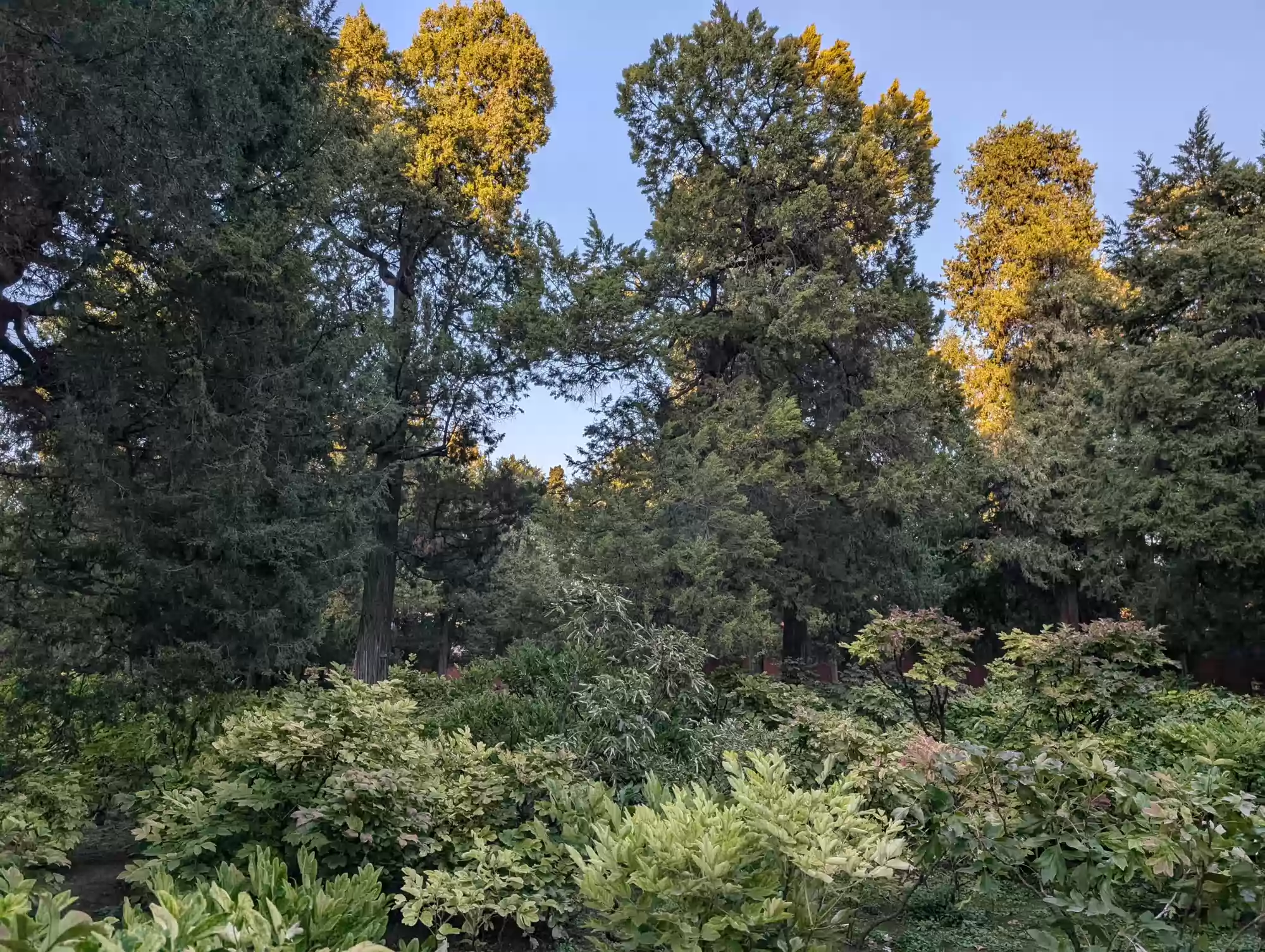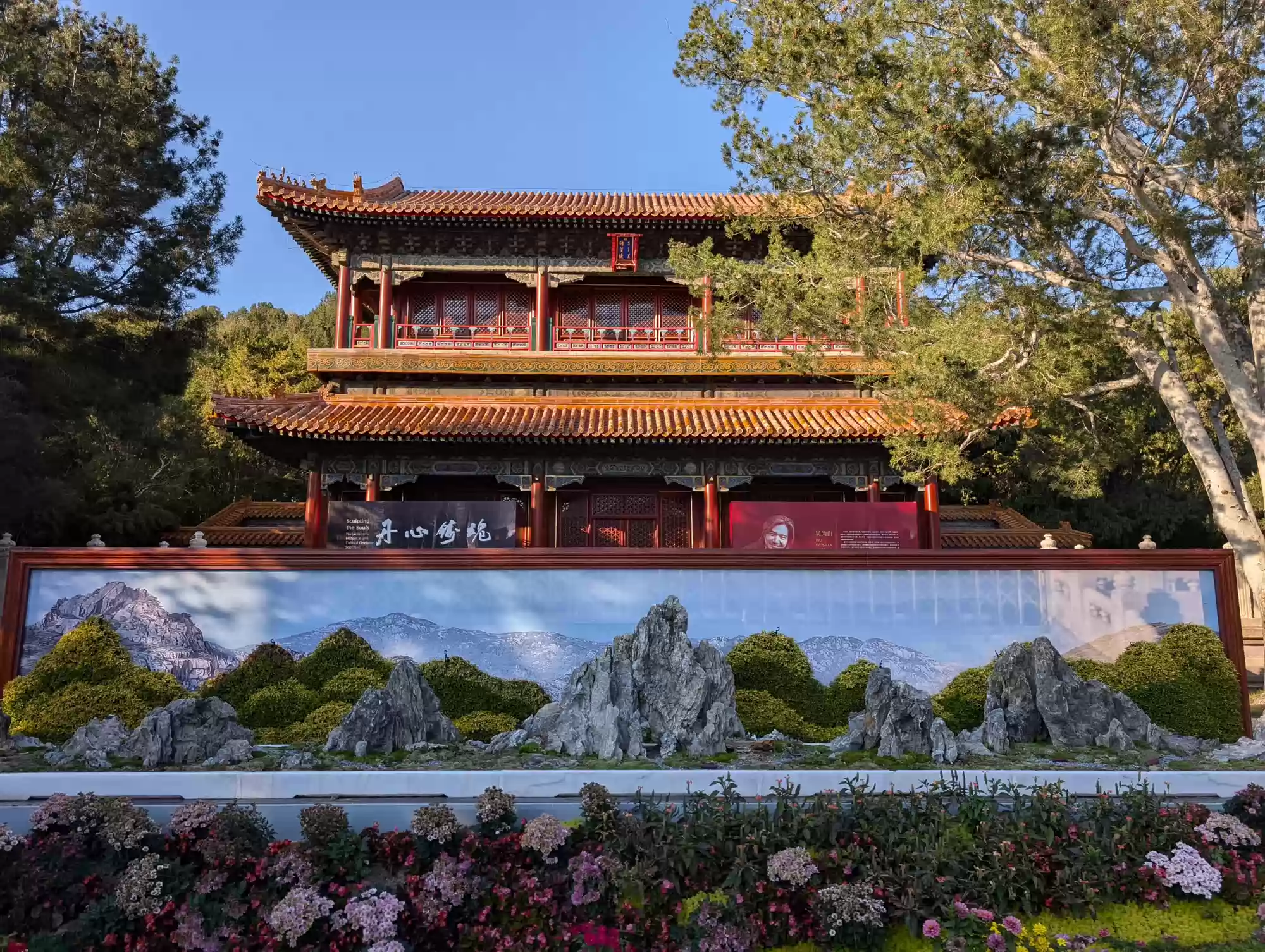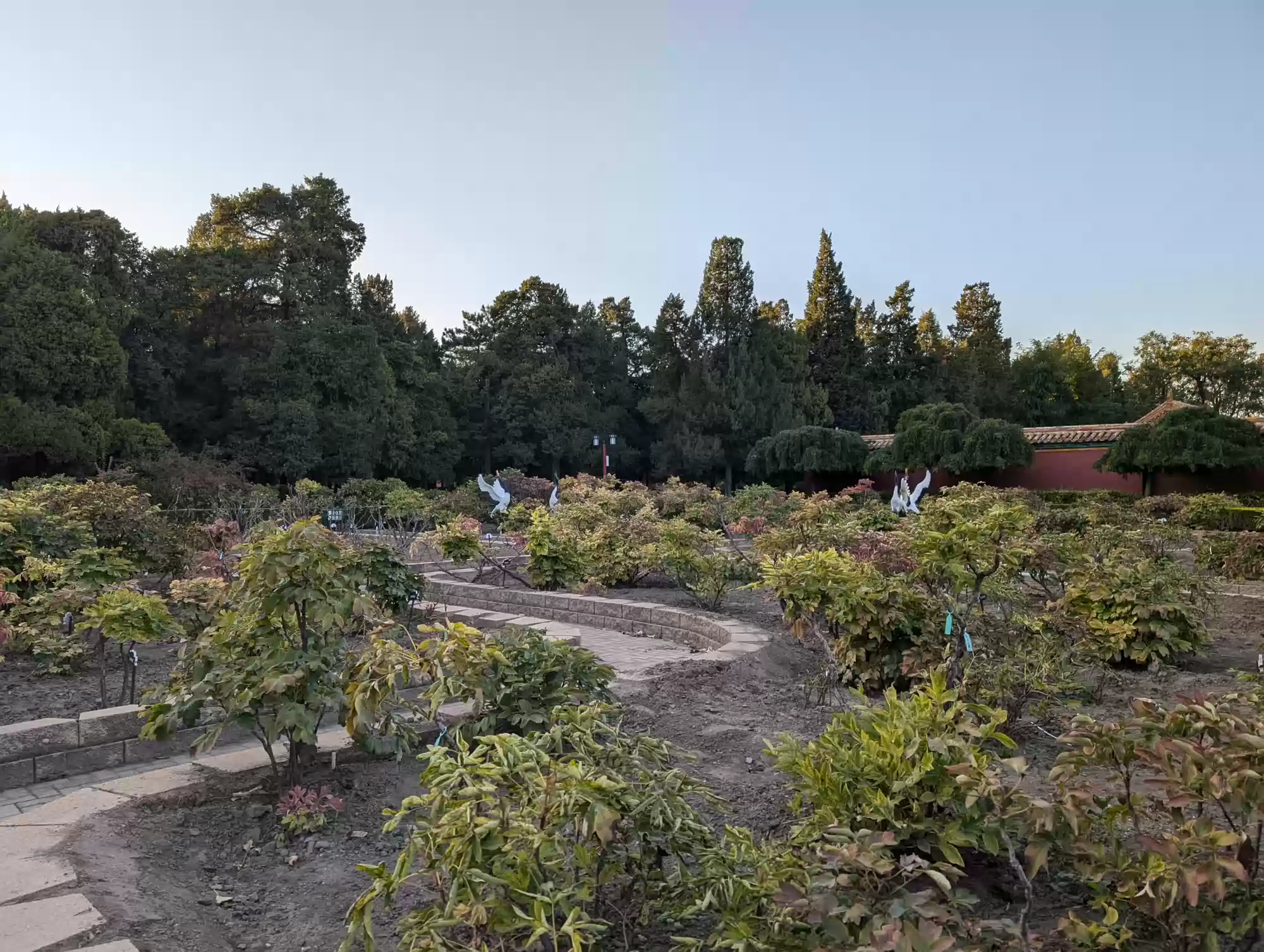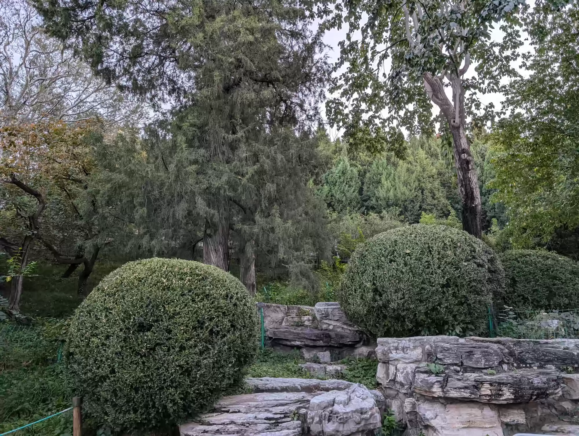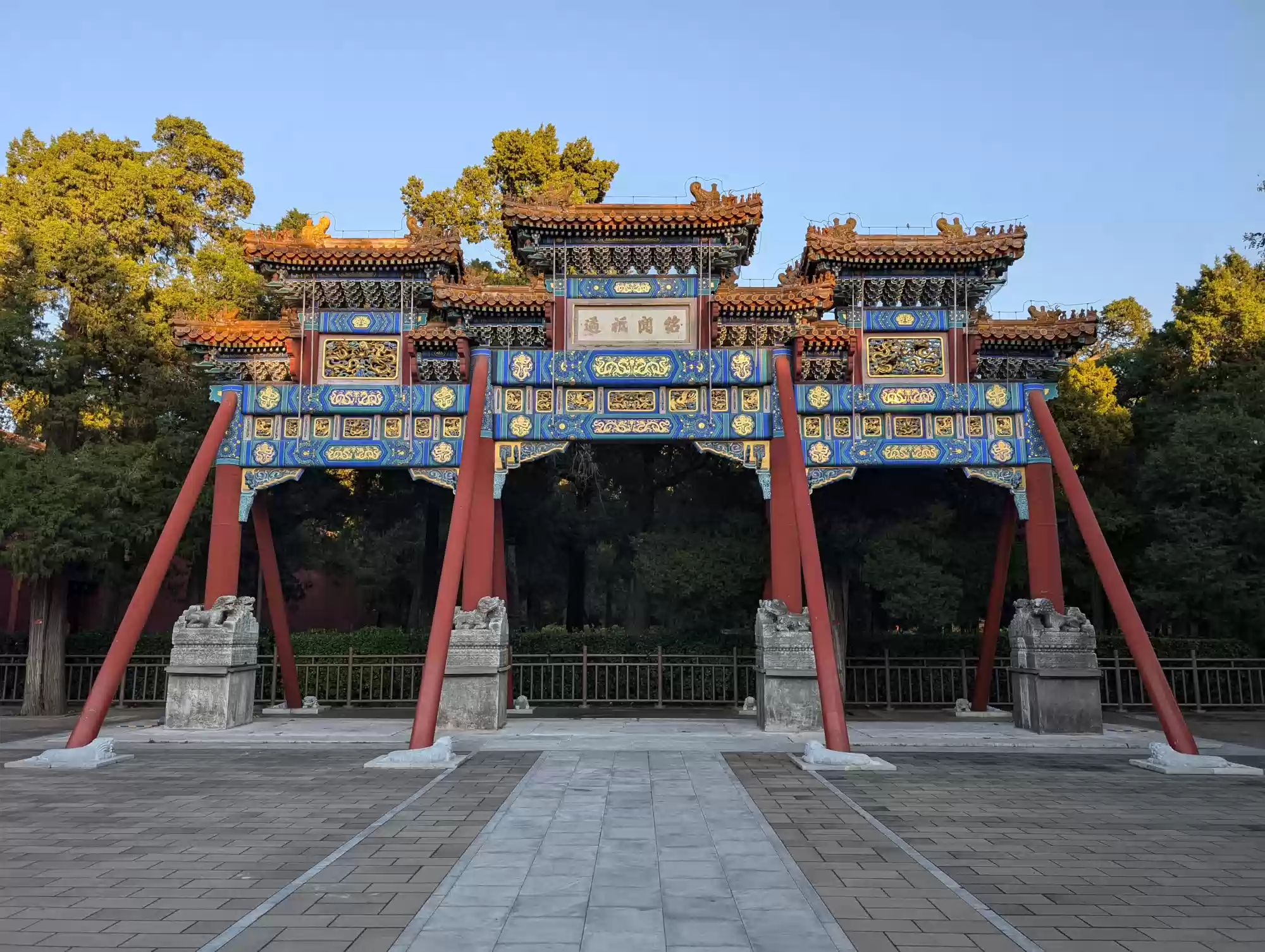 Jingshan Park, an imperial garden previously part of the Forbidden City. The manmade hill was built with earth excavated to dig the Forbidden City moats. Forbidden City moat. Fulan Pavilion, 1750. Originally a Buddhist temple. Forbidden City. Guanmiao pavilion, 1750. Zhoushang pavilion, 1750. Treasure gallery Labels