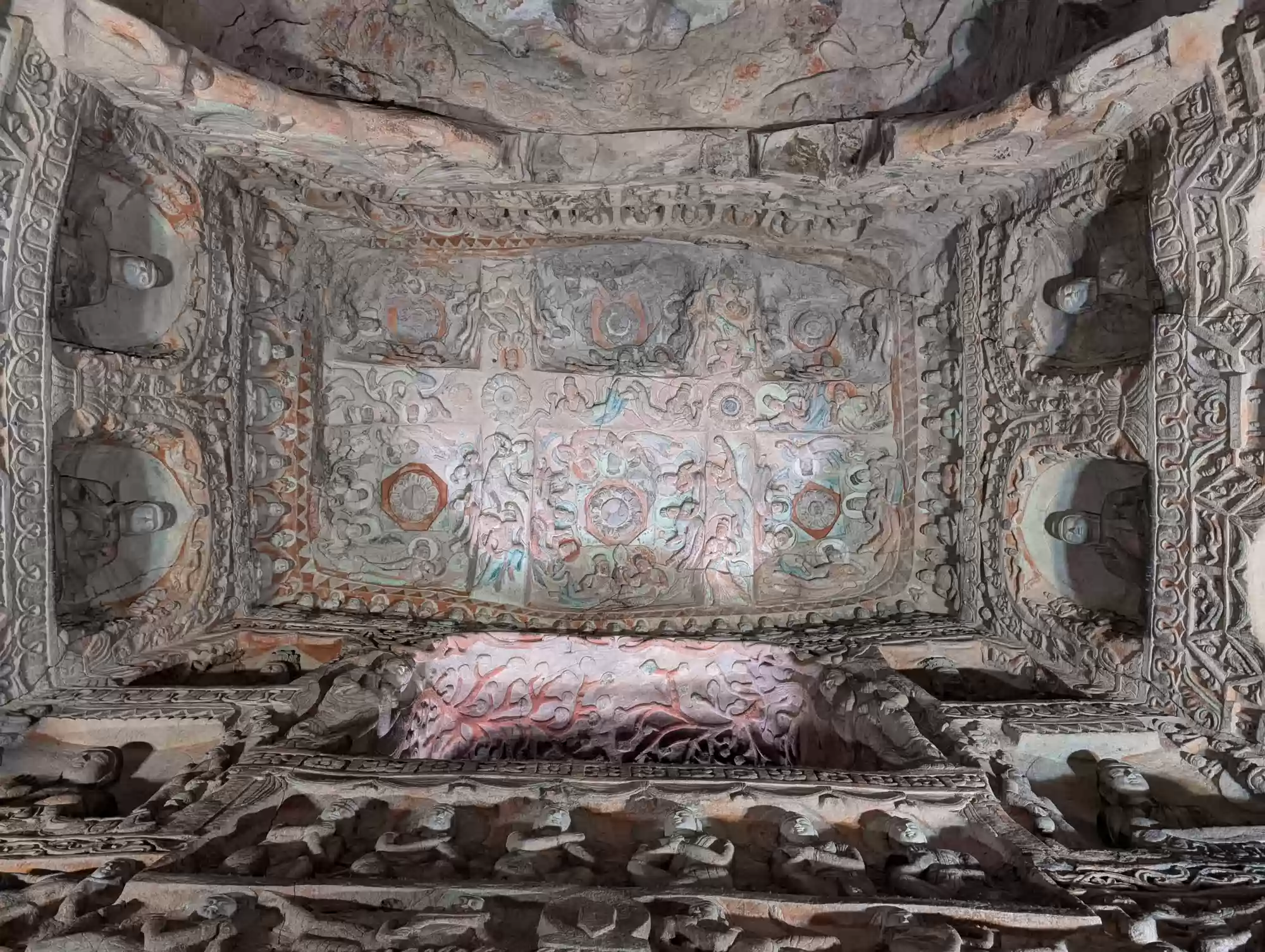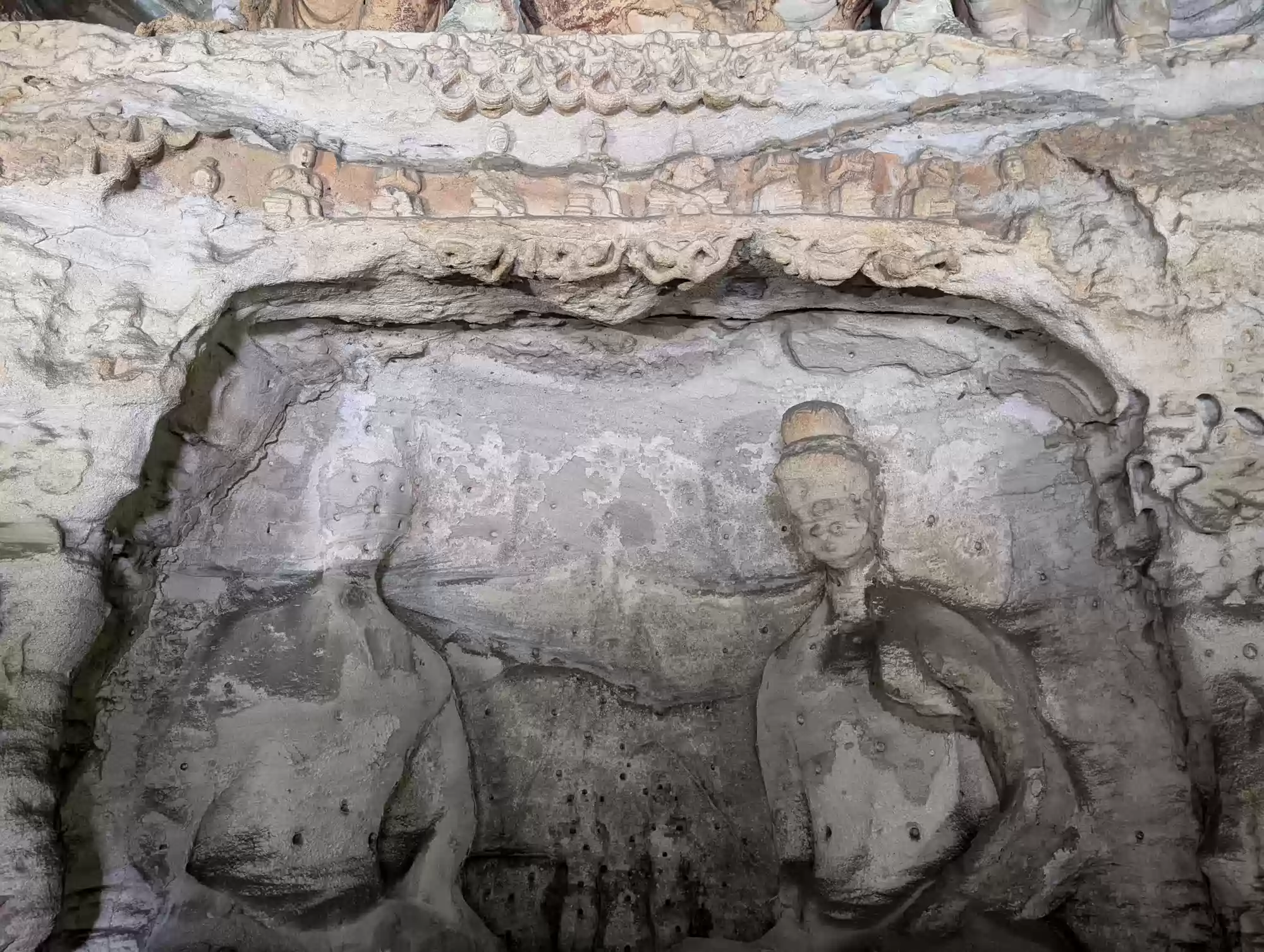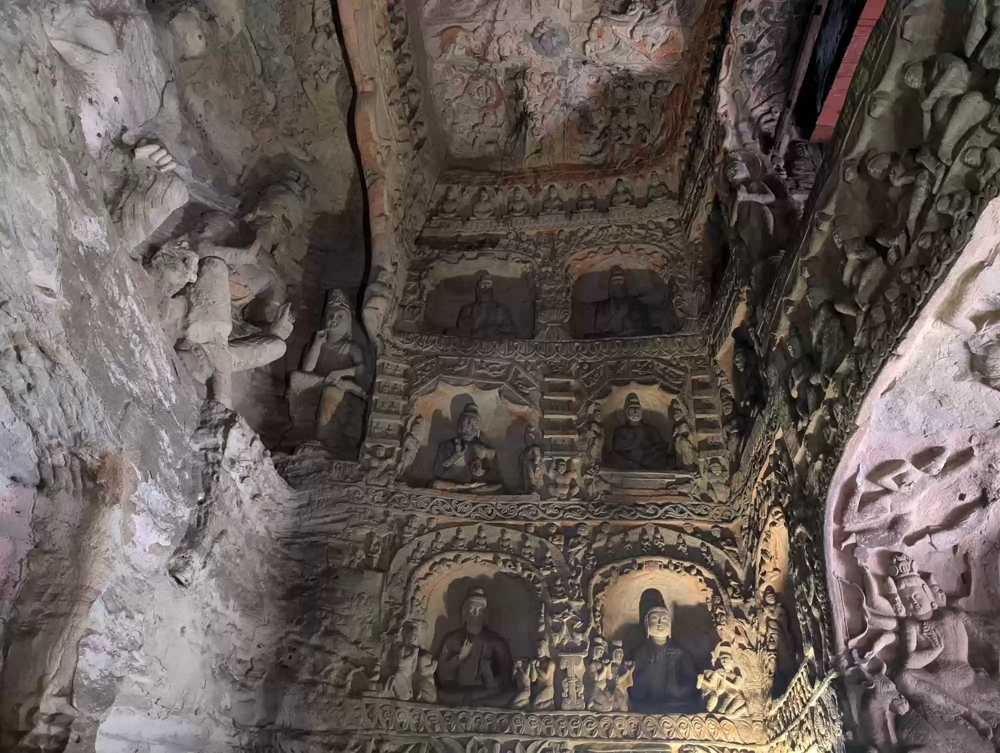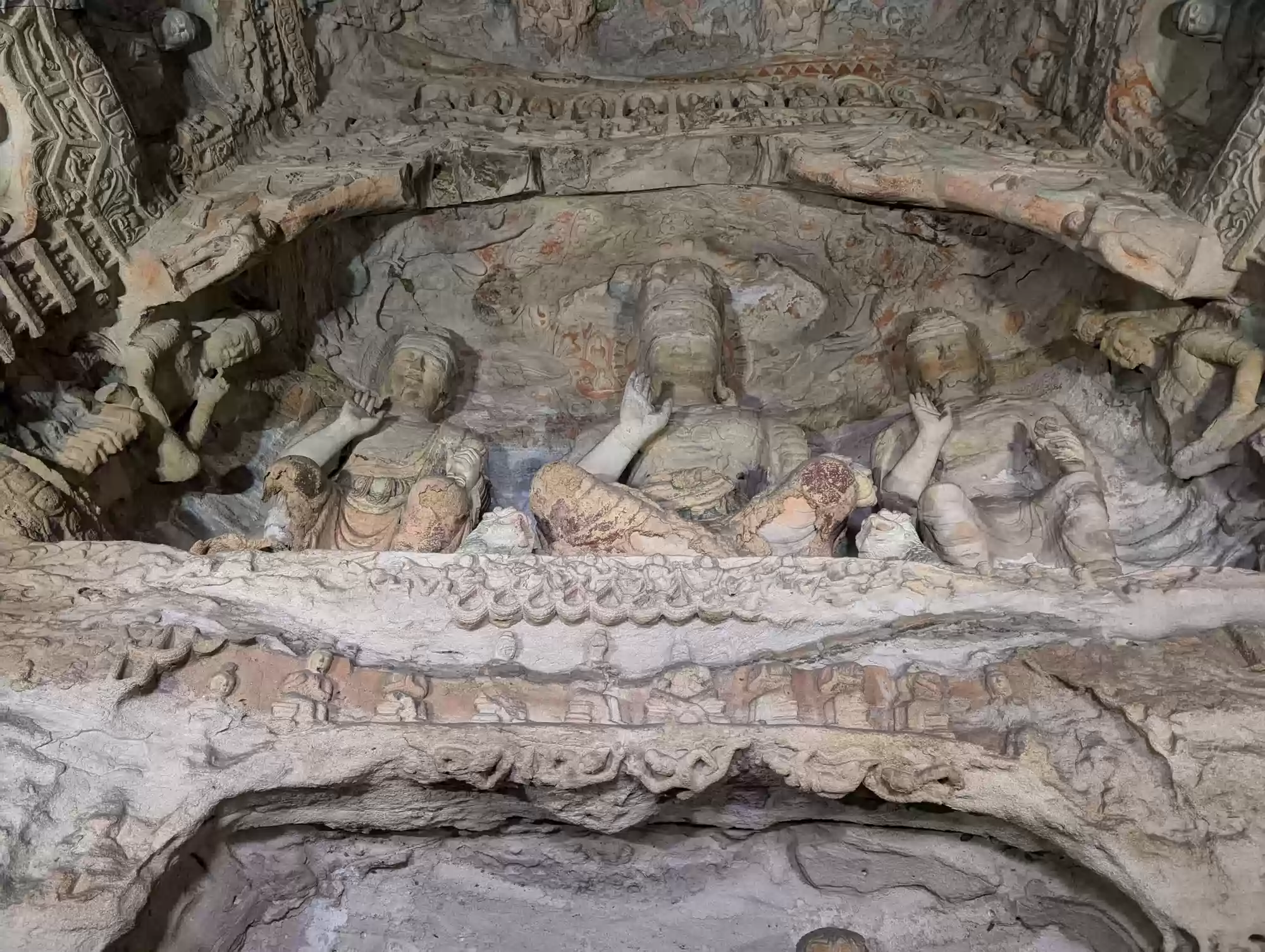 The right cave has a front and back chambers. The main chamber is horizontal rectangular shape. The sculptures in the cave show the mixed style of both Han…