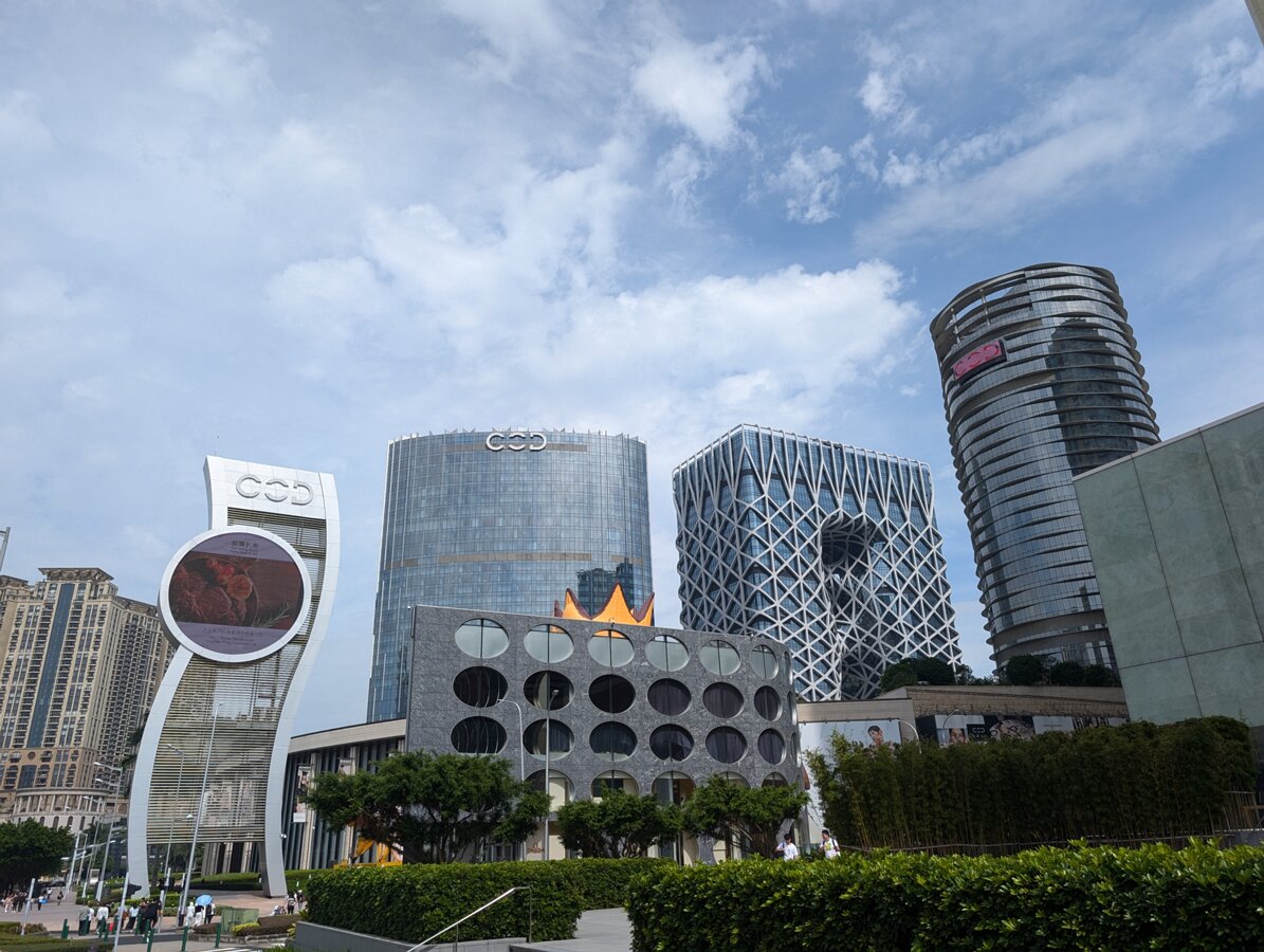 City of Dreams: 3 casinos, 4 hotels (more than 2000 rooms), 30 restaurants. Morpheus hotel by Zaha Hadid architects, 160m tall, 772 rooms, 2019. The aluminum exoskeleton removes the need for any internal column. Galaxy Labels