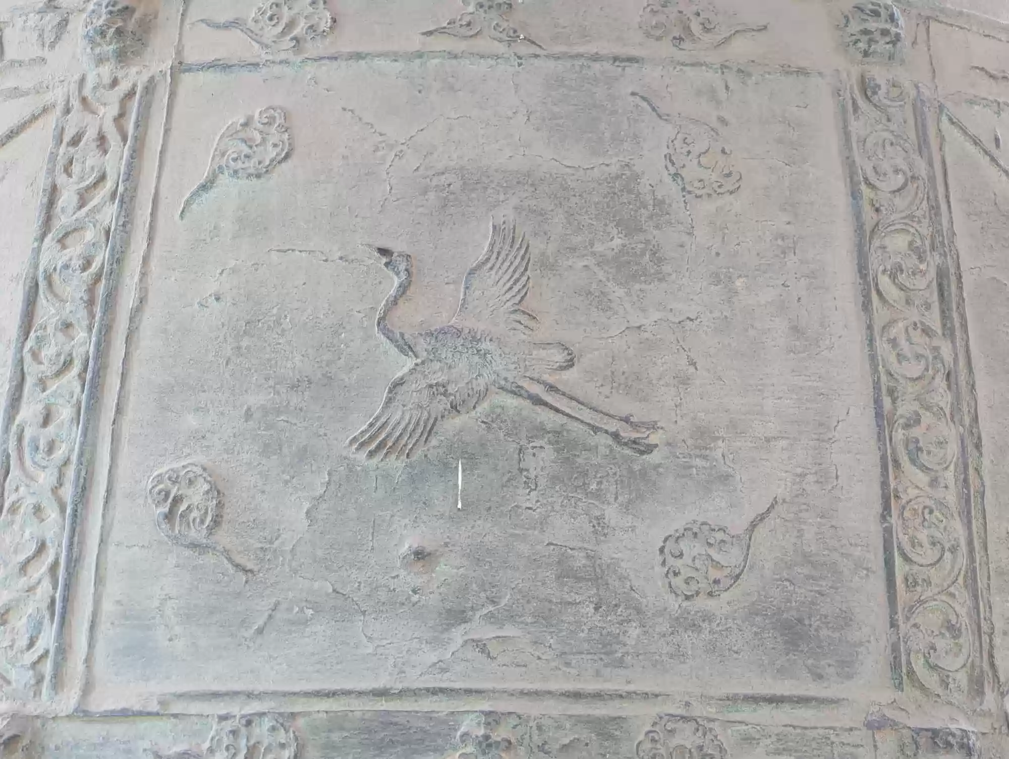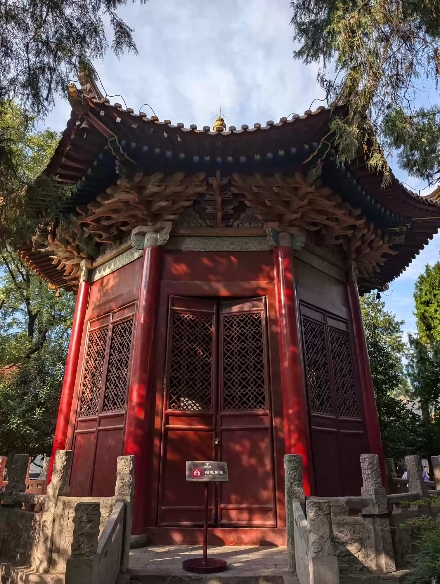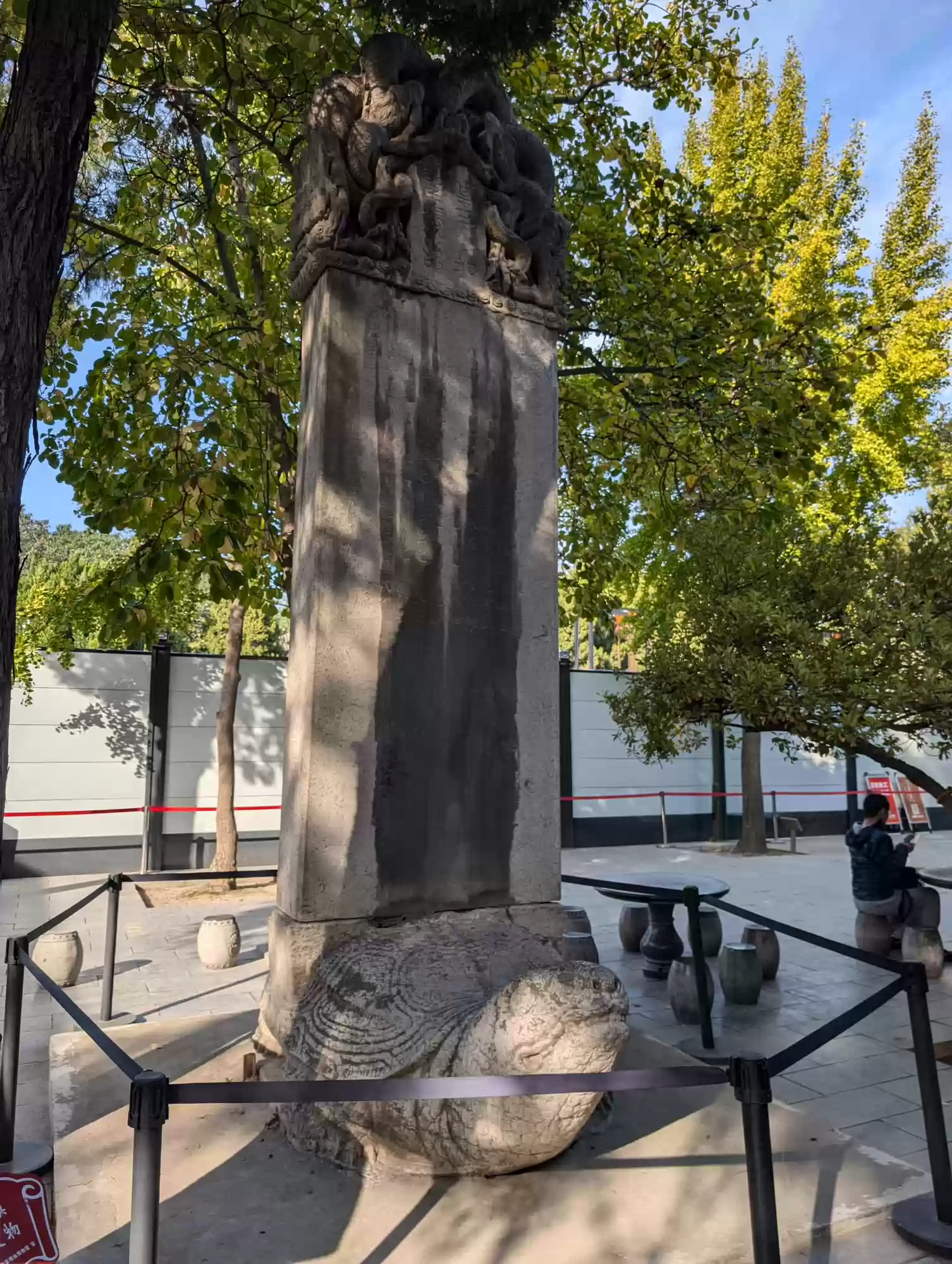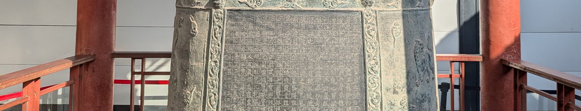Belin temple. Jingyun bell, cast in 711 (Tang), 6 tons, engraved with a text by Emperor Li Dan. Jingyun bell, cast in 711 (Tang), 6 tons, engraved with a text by Emperor Li Dan. Stele of an imperial edict, 1313. Bell Tower Labels