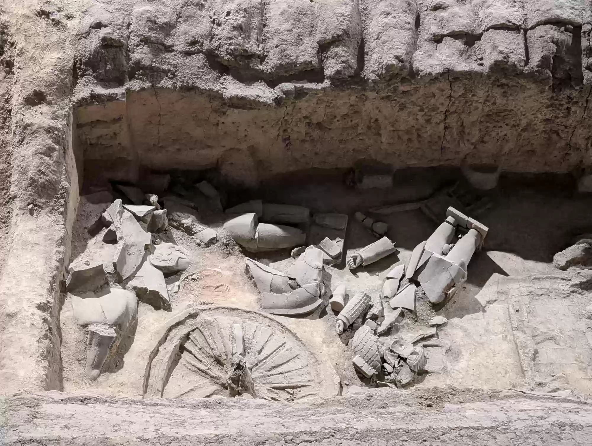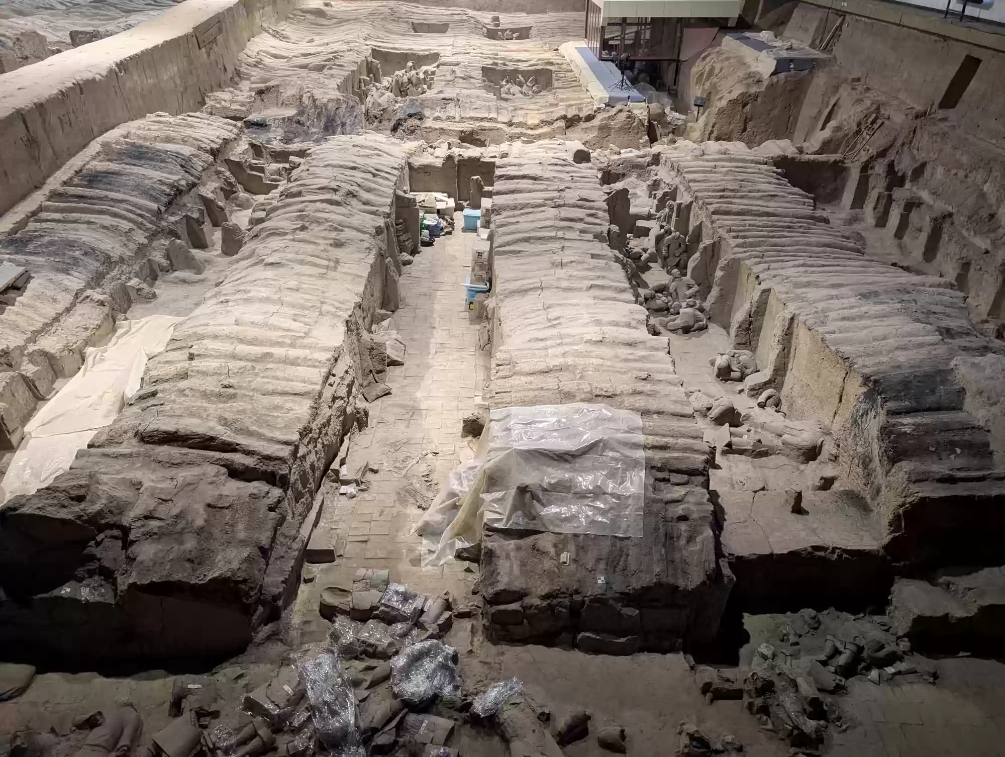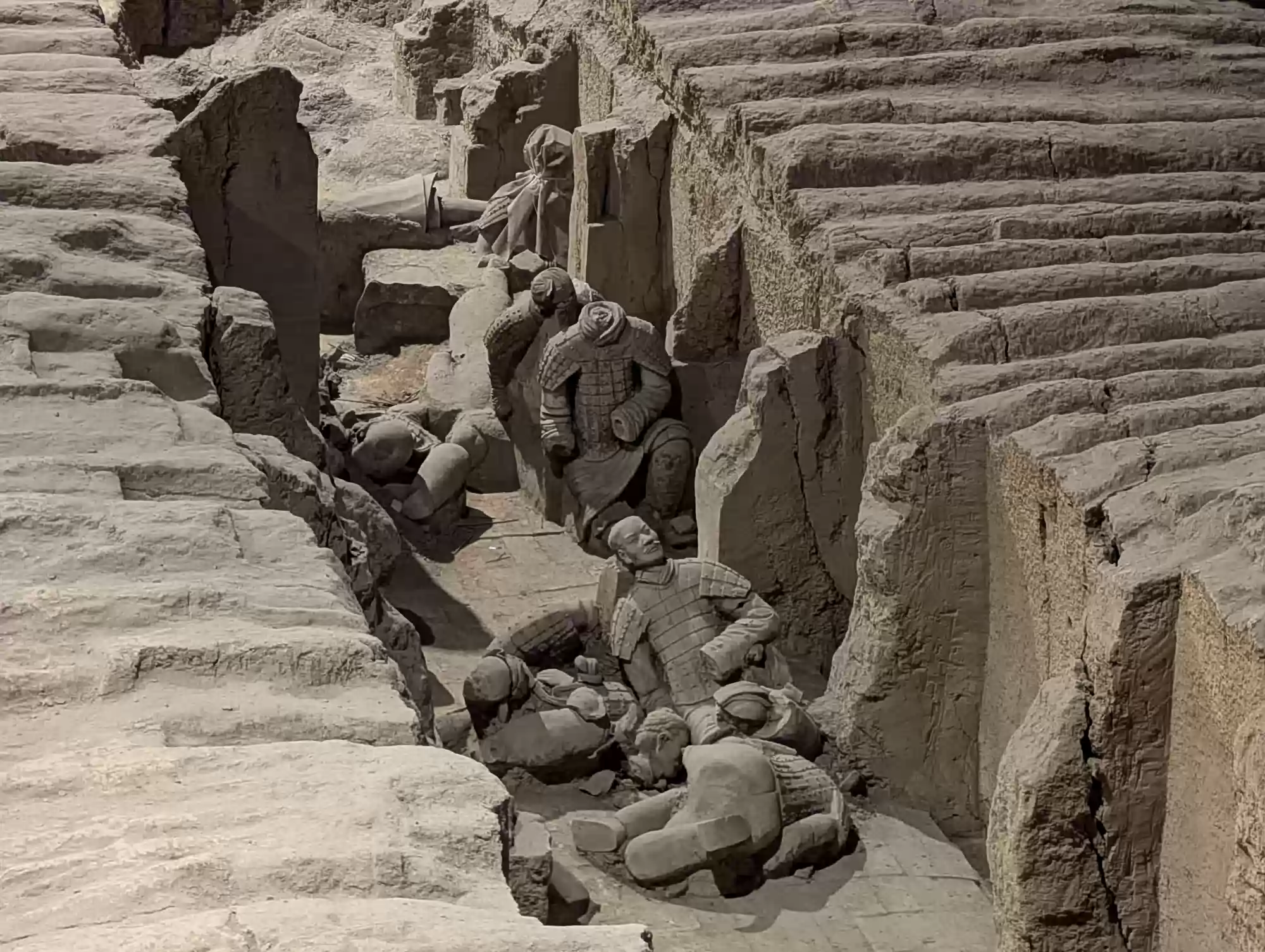 172 standing archers were found in the pit. 172 standing archers were found in the pit. 160 kneeling archers were found in the pit. 160 kneeling archers were found in the pit. 116 cavalrymen with their horses were found in the pit. The horse is shown with a saddle decorated with girth and crupper but no stirrup. 116 cavalrymen with their horses were found in the pit. The horse is shown with a saddle decorated with girth and crupper but no stirrup. Middle-ranking officer. 7 high-ranking officers were found in the pit. 7 high-ranking officers were found in the pit. Pit 1Pit 3 Labels