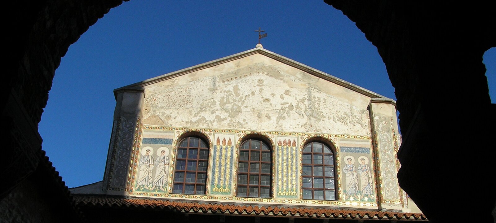 The Euphrasian basilica is a UNESCO world heritage site. It is a religious complex comprehending a 6th century basilica among other buildings, and is an… The ciborium, built in 1277. Stone decorated wall behind the ciborium. Krka National ParkSplit Labels