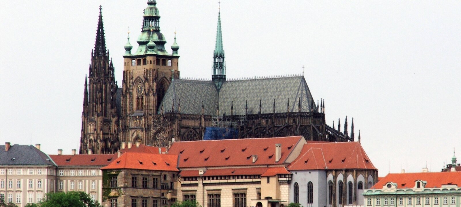 Entrance to the castle, still used nowadays by the Czech Presidency. Originally built in the 12th century, rebuilt and expanded many times thereafter. Entrance to the second courtyard. St Vitus church portal. The church was built between 1344 and the 20th century in flamboyant gothic style. The rose window was added in 1920. Nave (30-35m tall). The stained glasses date back from the 20th century. Gothic vaulting. Tomb of St John of Nepomuk, fully made of silver. Silver angels above the tomb. Tomb in a chapel inside the main church. Tomb of St Wenceslas. Charles Bridge Labels