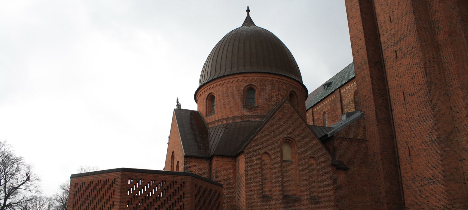 Roskilde cathedral, built during the 12-13th centuries, has been the burial place for Danish monarchs since the 15th century. Replica of a viking drakkar. Koge Labels