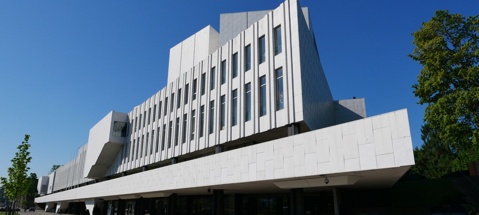 Finlandia hall, a congress center built in the 1960s by Alvar Aalto.