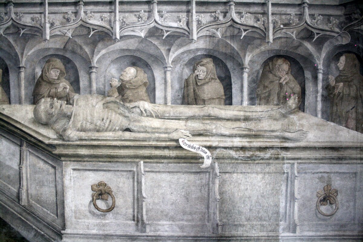 Saint-Maurice church is the oldest church in Annecy (1422-1491); it spans a canal. Choir stalls. Choir stalls. Trompe-l'oeil tomb of Philibert de Monthouz, advisor to the Duke of Savoy, 16th century. Trompe-l'oeil tomb of Philibert de Monthouz, advisor to the Duke of Savoy, 16th century. Weeping Dominican monks. Saint-Peter cathedral Labels