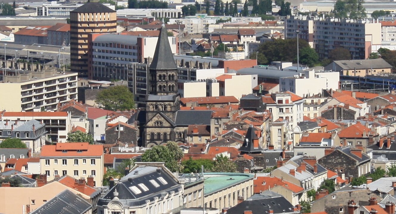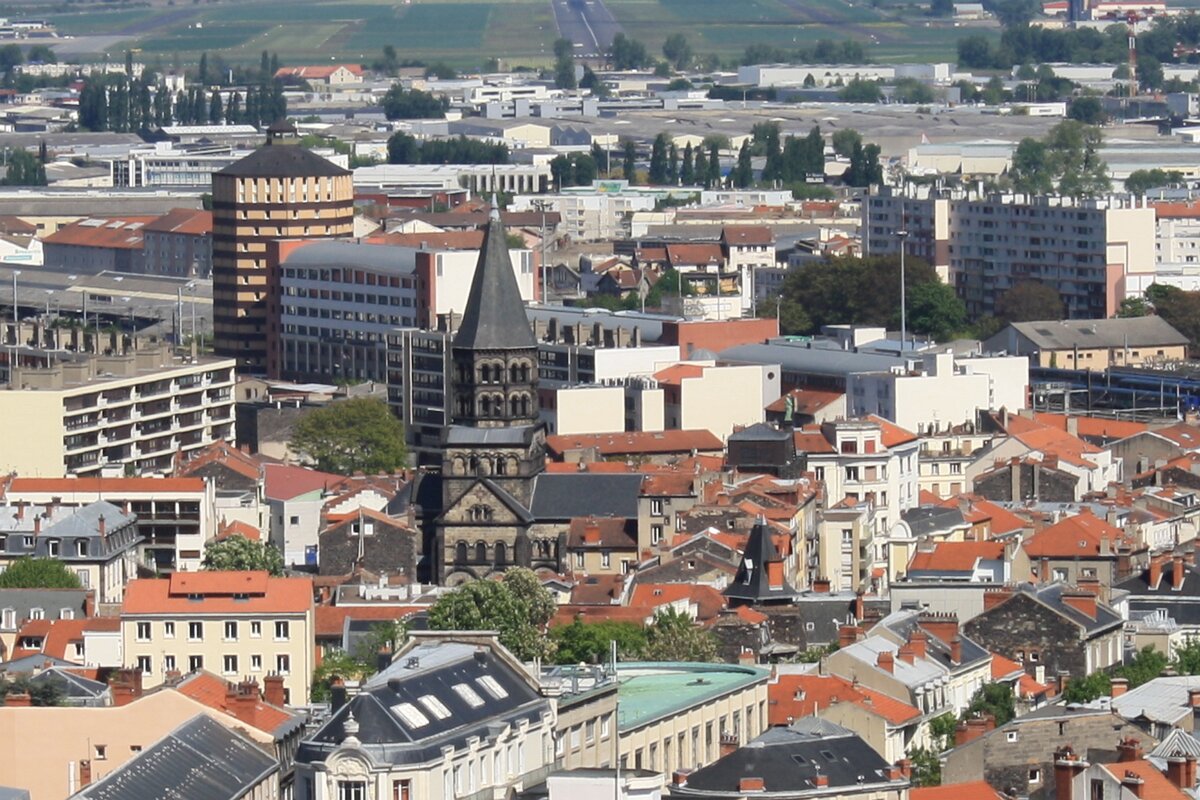 The 12th century romanesque basilica replaces a former 6th century church. The front gate was added in the 16th century. The current tower, built in 1823, replaces two towers that were destroyed during an earthquake in 1490. The 19th century tower, made of Volvic lava stone. The octogonal tower was added in 1843. The octogonal tower was added in 1843. Apse. Apse. Apse. Apse. Apse. Cathedral Labels