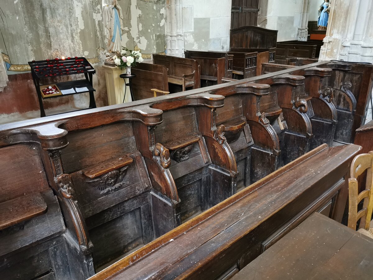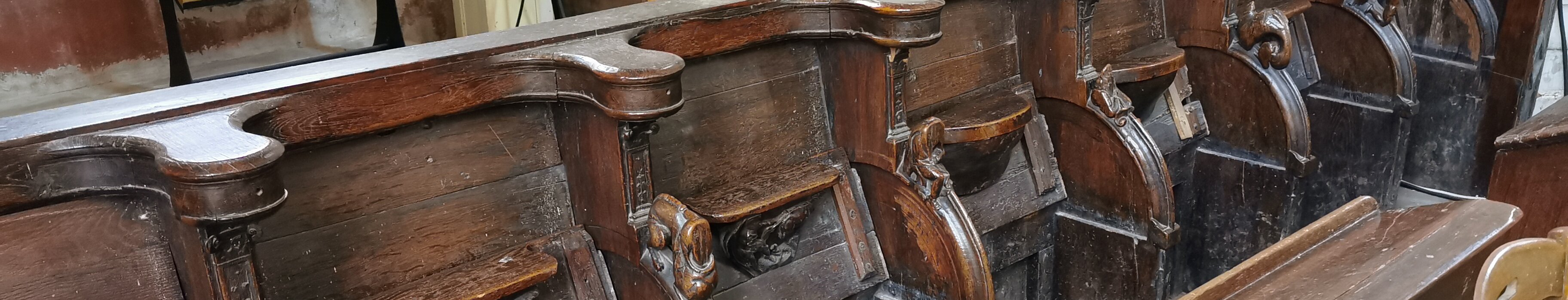 Notre Dame, 1491-1515. Stained glass window, ca. 1600. Stalls, 16th century. Stalls, 16th century. Stalls, 16th century. Stalls, 16th century. Labels