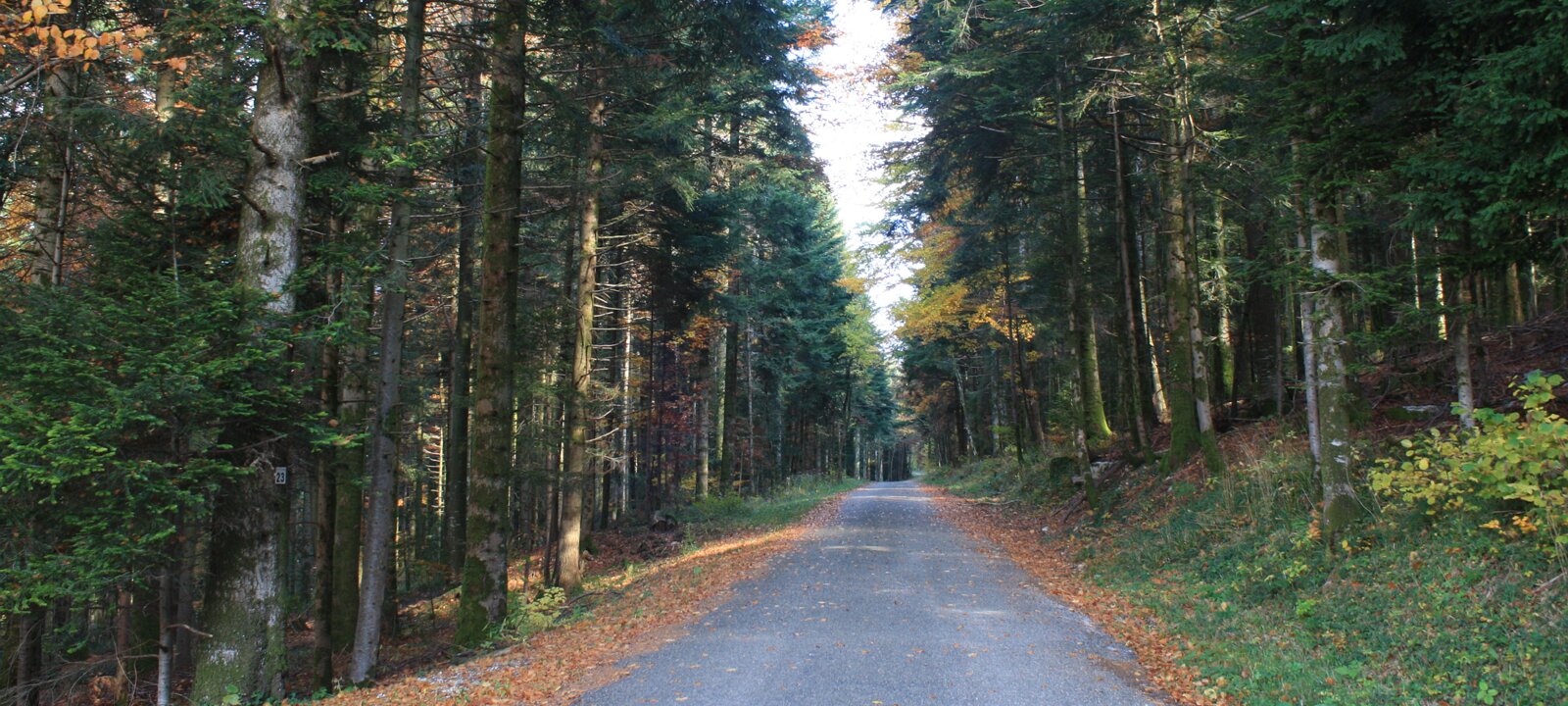 Fir tree road. The "president fir tree" (elected in 1964 by professional forest workers - a local tradition): 45m tall, 4.3m circumference. President fir tree. Celtic/roman road. Celtic/roman road. RonchampSalins-les-Bains Labels