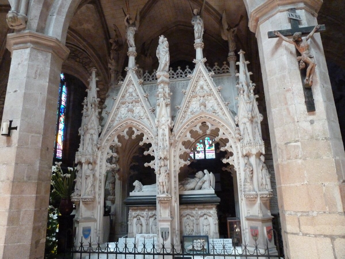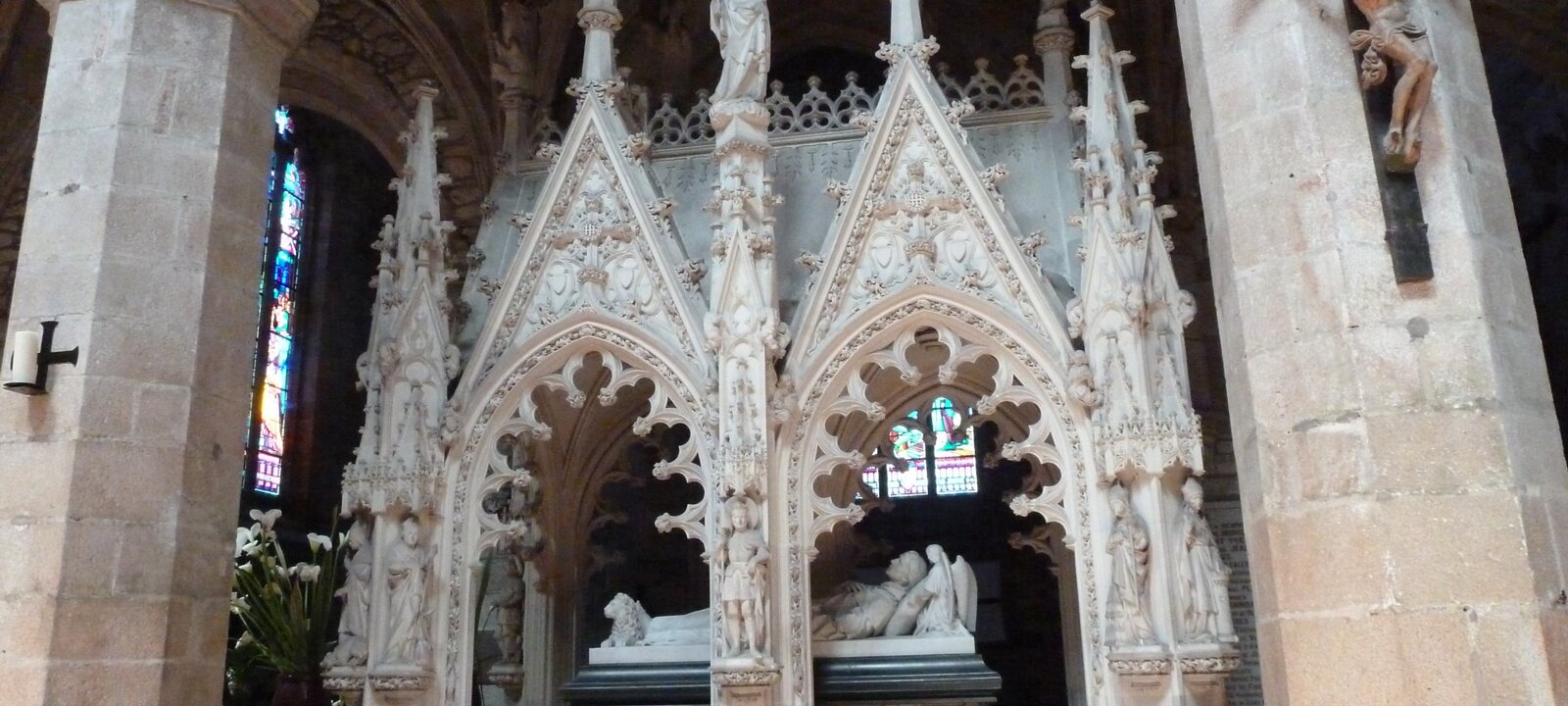 Saint-Tugdual cathedral was built in the 14th century between 1339 and 1400. Hasting tower, 11th and 12th centuries, the only part of the former romanesque cathedral that was integrated to the new gothic cathedral. Hasting tower, 11th and 12th centuries, the only part of the former romanesque cathedral that was integrated to the new gothic cathedral. Cloister Labels