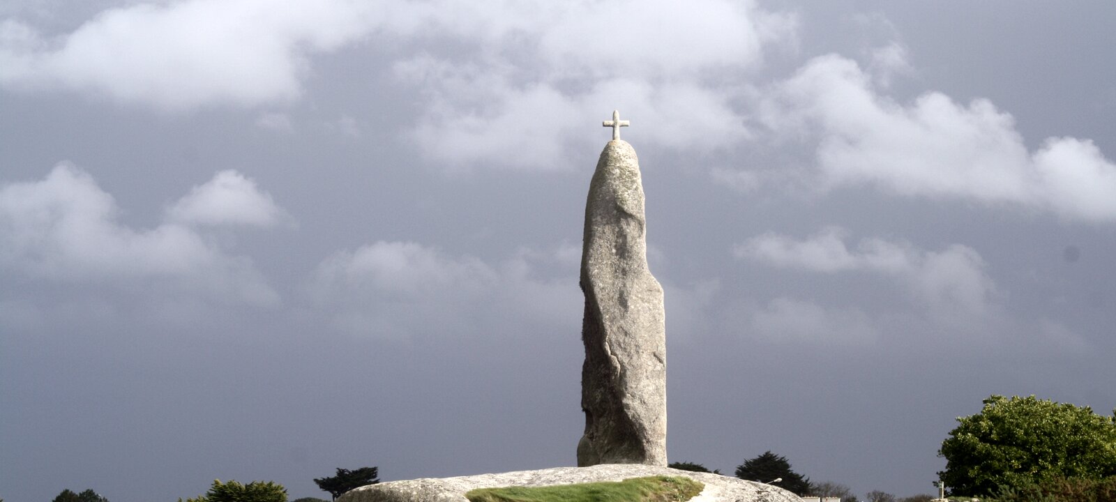 A menhir (likely erected around 3000 BC), the top of which was carved into a Christian cross.