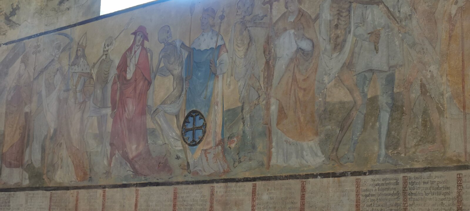 Church, 11th century, second nave from the 16th centiury. Paintings (dance of death) from the late 15th century. Passion of the Christ. Passion of the Christ. Dance of death. Dance of death. Dance of death. Maintenon castleMontlouis-sur-Loire Labels