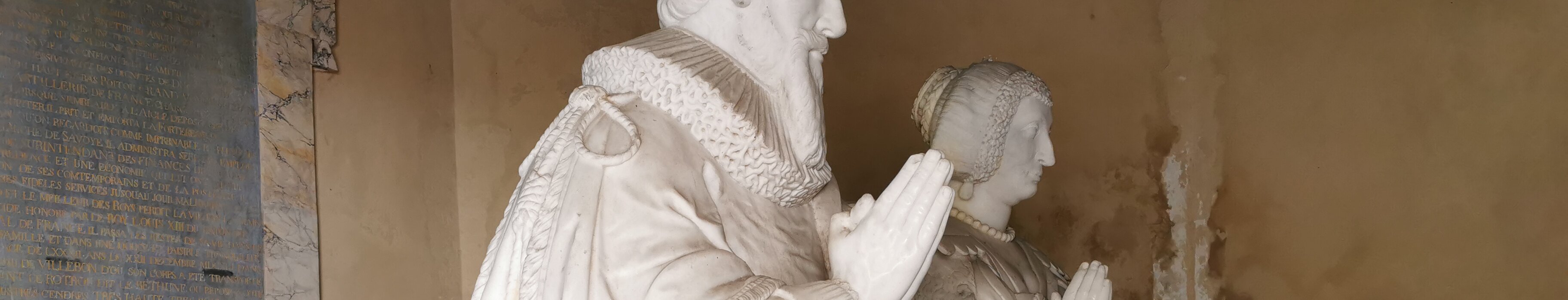 Tomb of Sully, 1642. The tomb is located in the Hotel-Dieu (hospital). Maximilien de Bethunes, duke of Sully (1560-1641) and his wife (1562-1659). Museum Labels