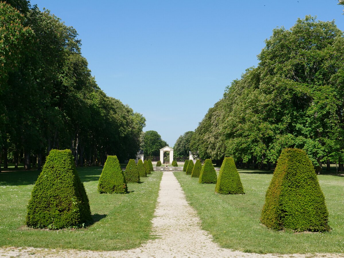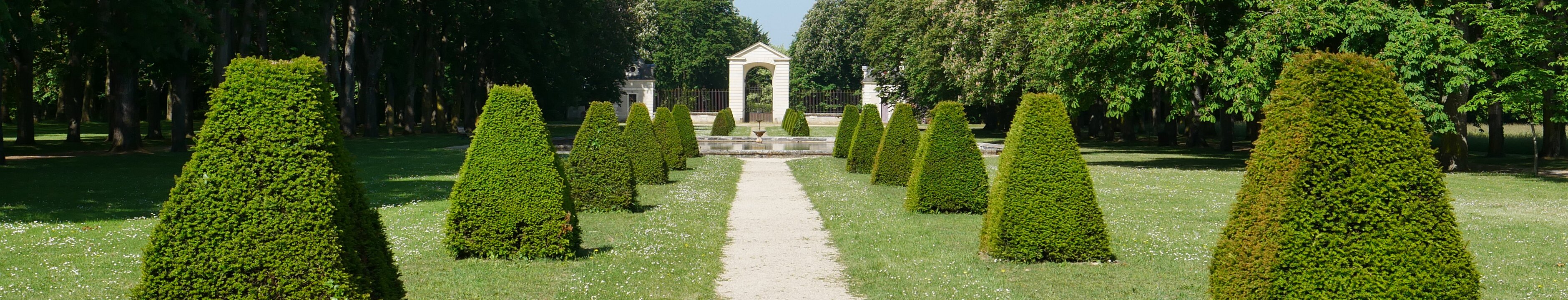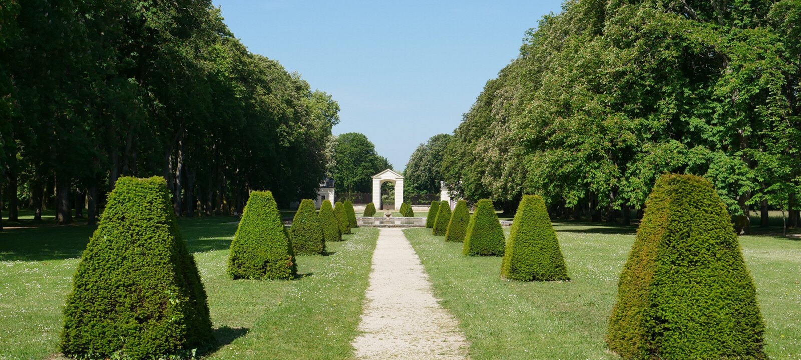 Park of the former castle of Richelieu, built in the 1620s and 1630s, destroyed in 1805. Bridge to the footprint of the destroyed castle. Footprint of the destroyed castle. Church Labels