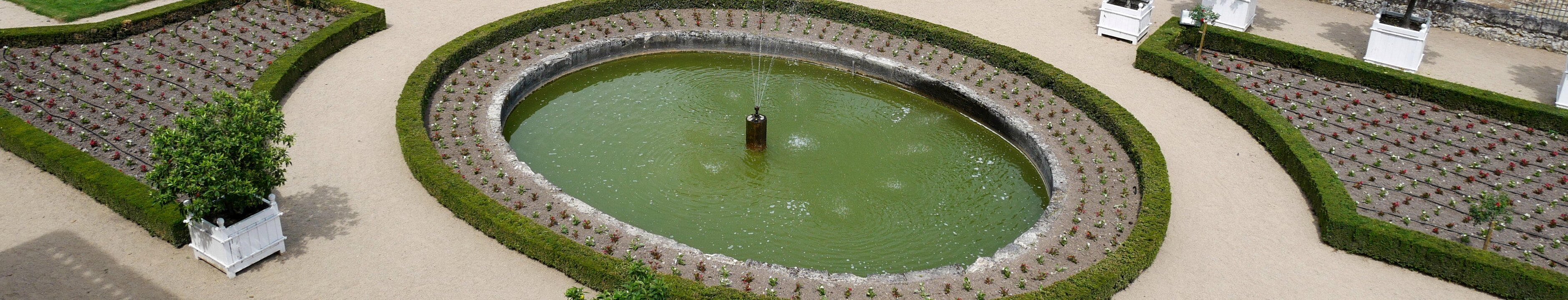 Gardens and orangerie (left). The gardens were designed by Le Nôtre in the 17th century. Orangerie, built in 1659. Church Labels