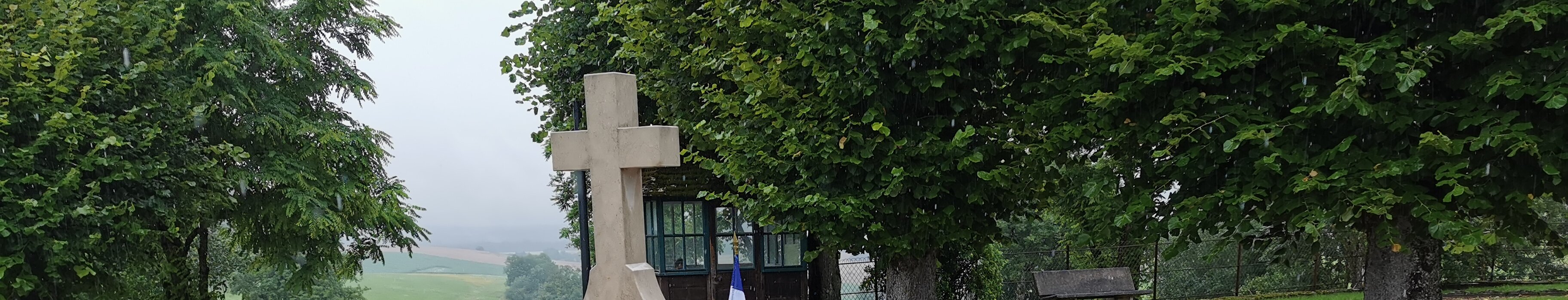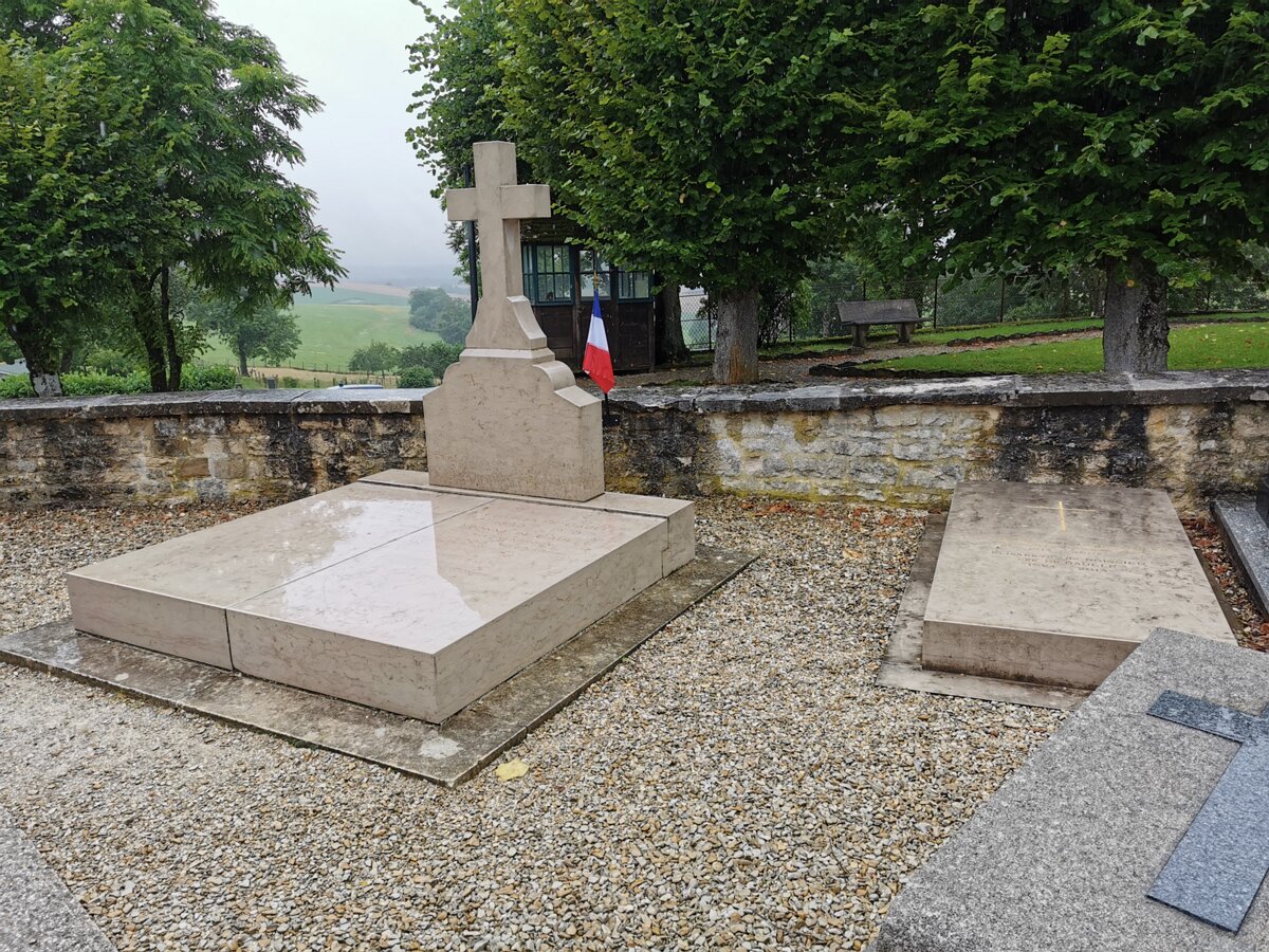 Church, choir from the 11th and 13th centuries, nave from the late 18th century. Church, choir from the 11th and 13th centuries, nave from the late 18th century. Tomb of Charles de Gaulle and his wife and their daughter Anne (left), and of their daughter Elizabeth (right). Tomb of Charles de Gaulle and his wife and their daughter Anne. Memorial Labels