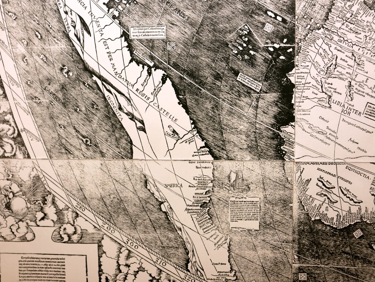 Waldseemüller's map, 1507 (fac simile), where the name America (coined in Saint-Dié) appears for the first time.