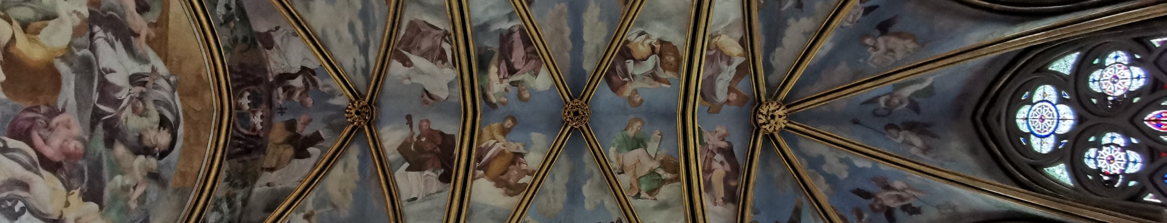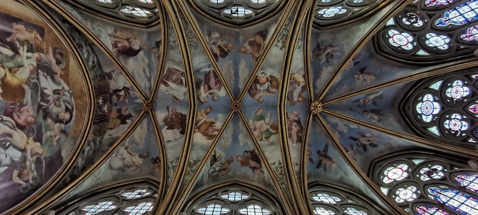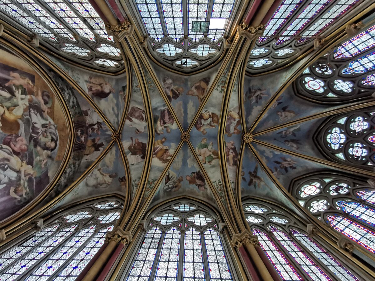 Chapel Saint-Mary, built between 1245-1255, with frescoes by Primaticcio, 1543-1545. Primaticcio was in France to work in Fontainebleau at the behest of king… Ceiling with the apostles and the evangelists. Annunciation, by Primaticcio. Museum Labels