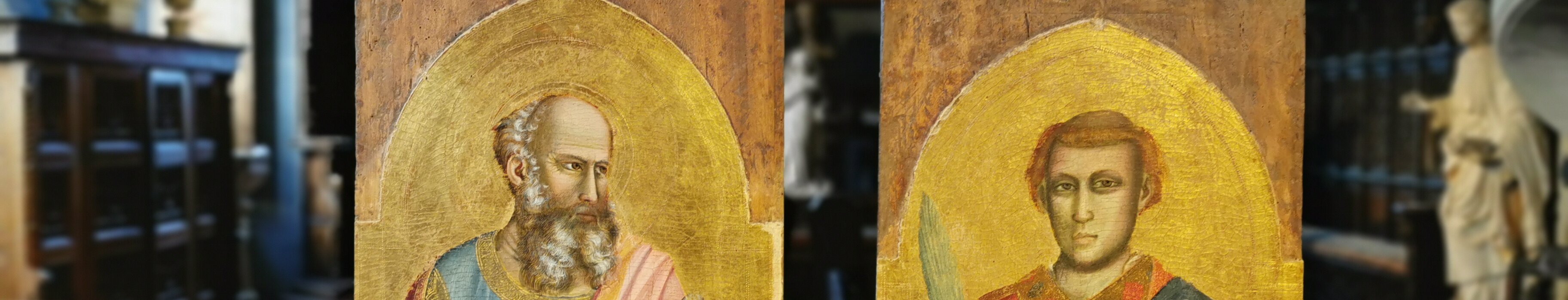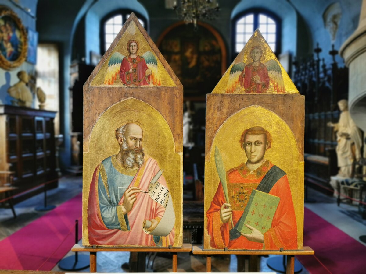 Saint John and Saint Lawrence, Giotto, early 14th century. Probably parts of a polyptych with 5 panels. Another part (a Madonna and child) is exhibited at the…