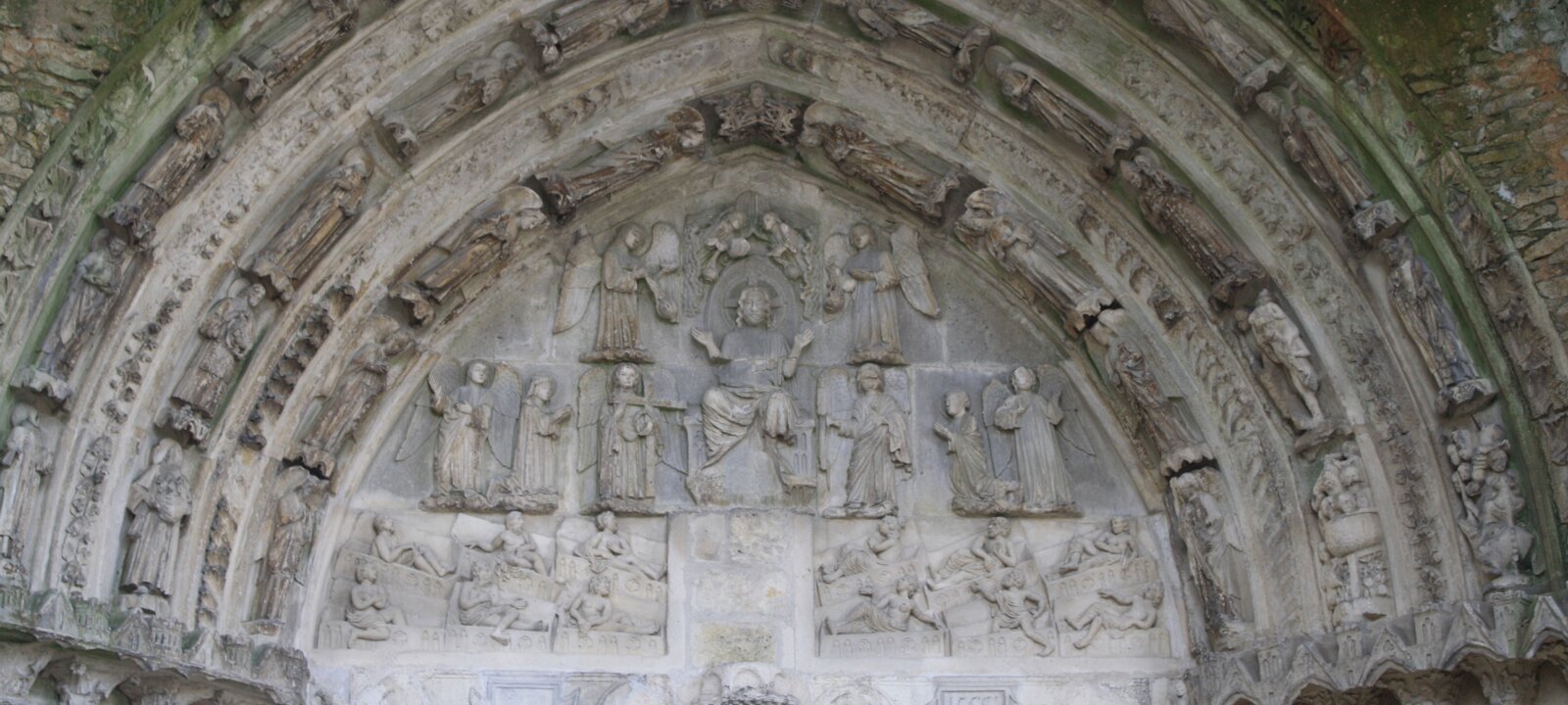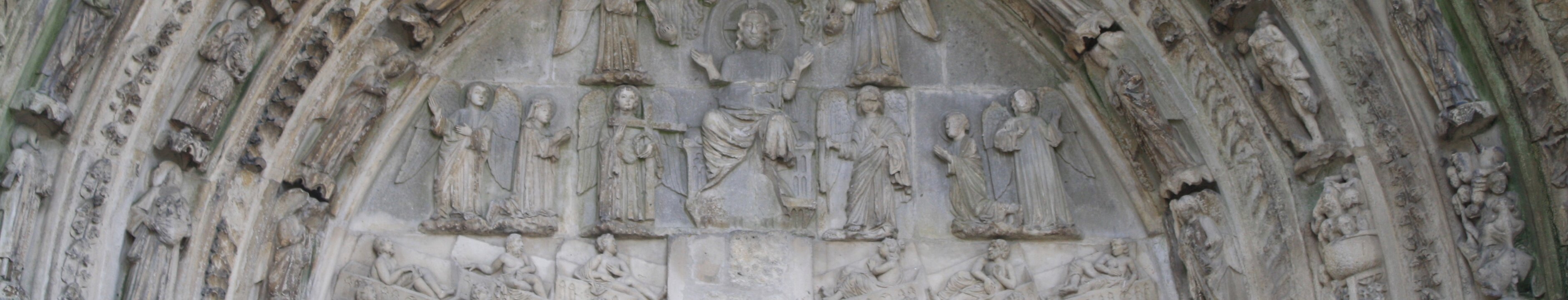 Larchant, a small village dominated by the St Mathurin gothic church (late 12th century and after). The church has partly collapsed, but it is still used today. The tower has partly collapsed in 1675. Inside the collapsed tower. Last judgement gate (13th century). JouarreLa Roche-Guyon Labels