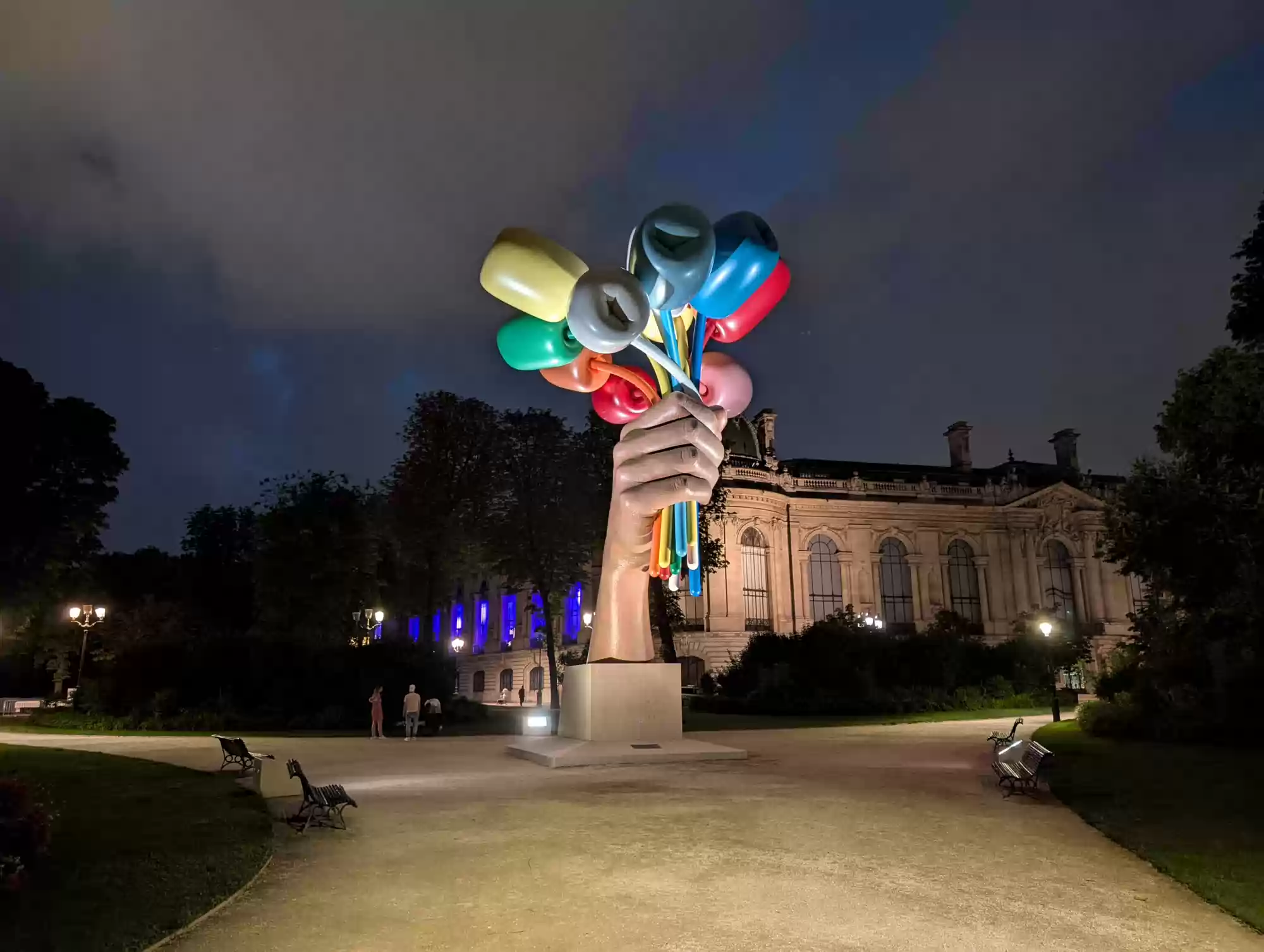 The Champs-Elysées are a large avenue linking Concorde square to the Arc de Triomphe . On the picture, the avenue is in the bottom/middle left corner.