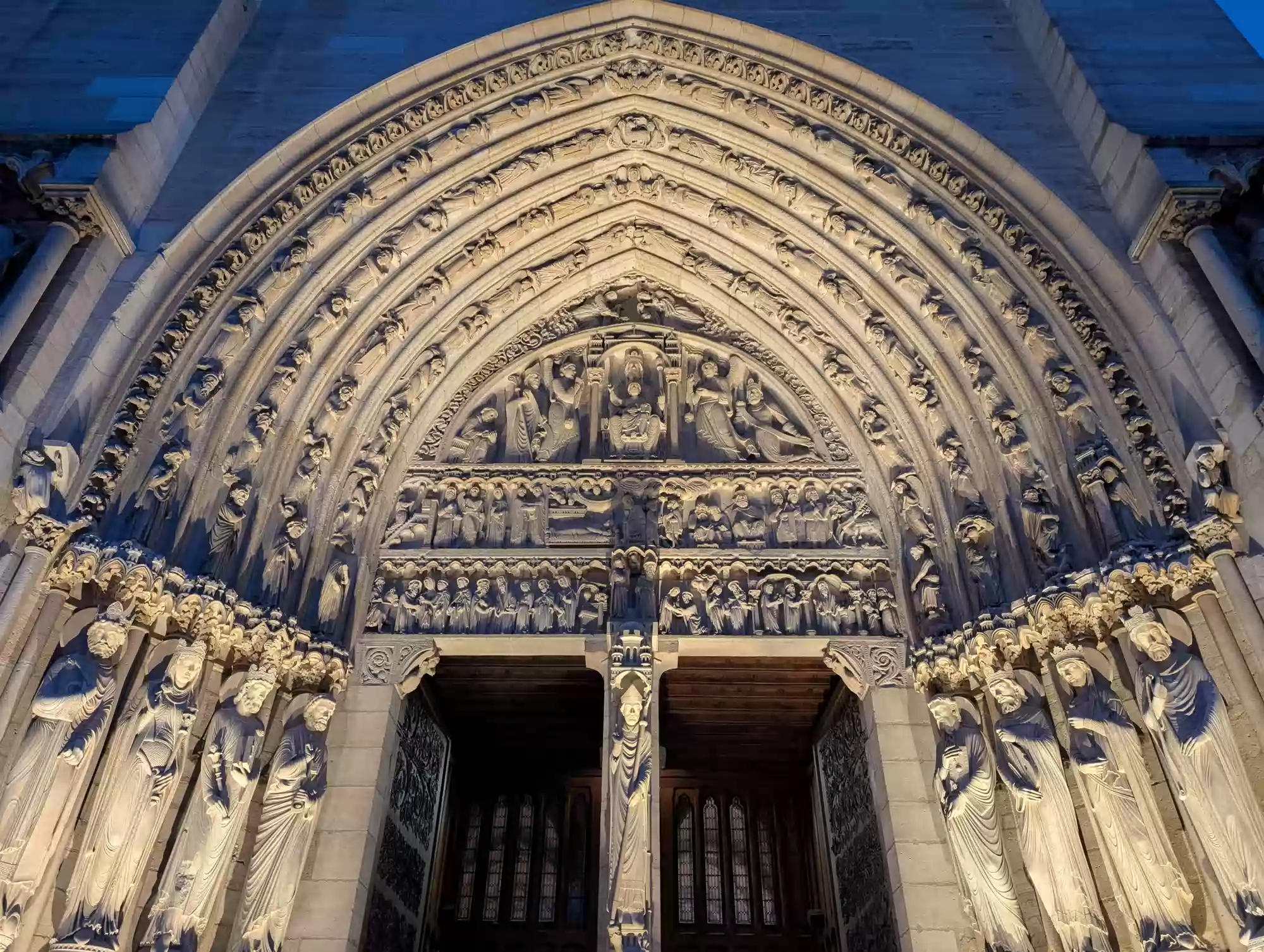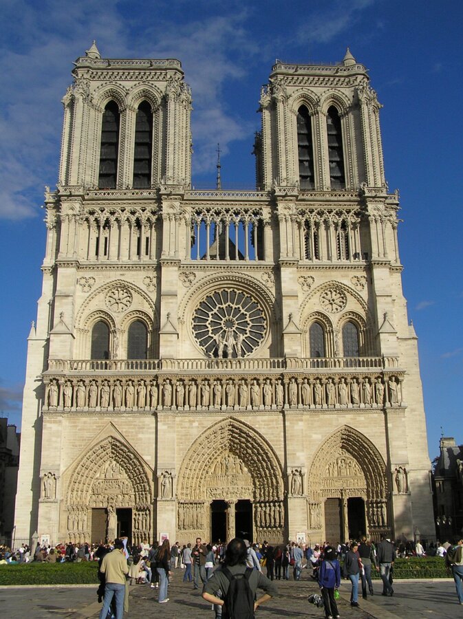 The 3 portals of the west facade of Notre-Dame. Notre-Dame is a 5-nave church despite having only 3 portals.
