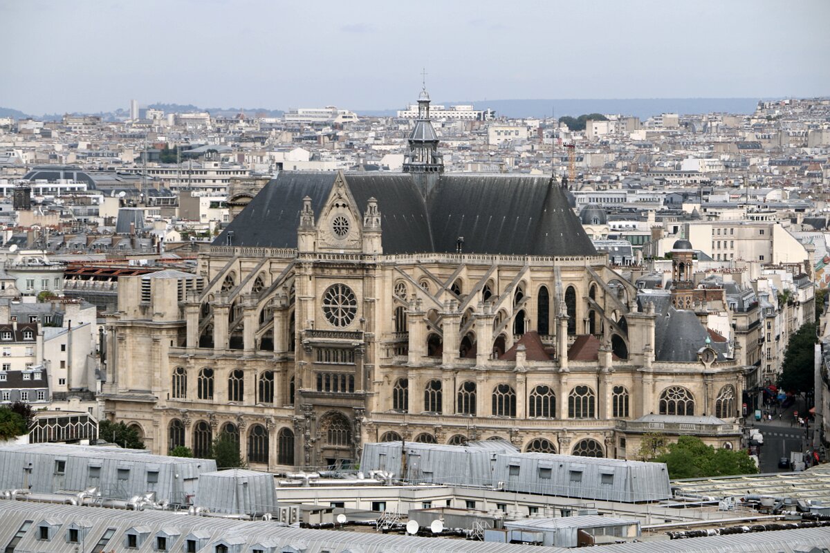 St Eustache church (1532-1633), the only Renaissance church in Paris. The classic facade dates back from 1754. The church is embedded in the urban fabric. Saint-Etienne-du-mont churchSaint-Jacques tower Labels