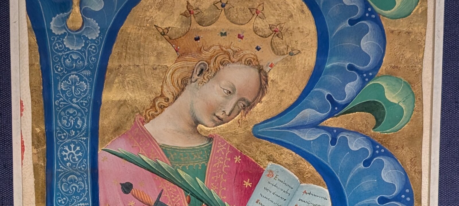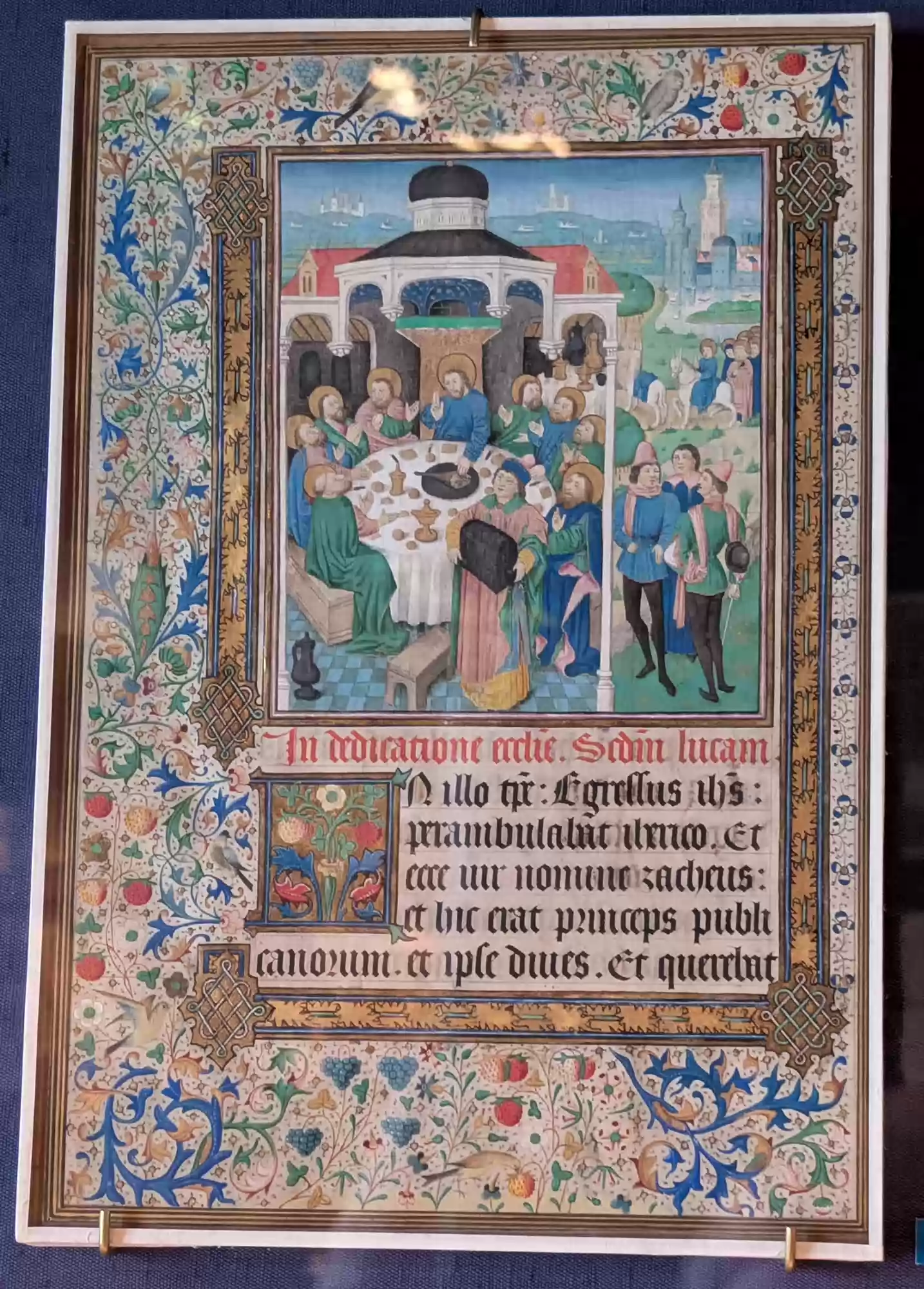 Stained glass windows depicting the life of Saint, 13th century. Master of Cesi, Assumption of the Virgin, 13th century. A bishop is accused of simony by two fornicators, pleads his case to the archbishop of another province, Toulouse, ca. 1340. Adoration of the magi, Sienna, mid-14th century. God creating the stars, Siena, 15th century. Northern Italy, first half of the 15th century. Northern Italy, first half of the 15th century. Saint Catherine of Alexandria, Lombardy, mid-15th century. Meal of Christ with Zachaeus in Jericho, and the gate of Jerusalem, Tournai (Flanders), ca. 1460-1470. Julius Caesar welcomes the Germanic embassador, Bourges or Paris, ca. 1485. Saint Agatha, Sienna, ca. 1500. Nativity, Sybils and the Vision of Augustus, Flanders, early 16th century. Madonna and child, Malines school, ca. 1500. Saint Agnes, Malines school, ca. 1500. Monet Labels