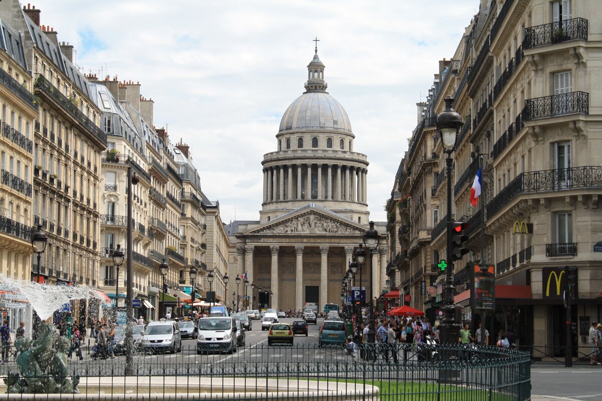 Pantheon , Saint-Etienne-du-Mont church (background) and Ministry of higher education and research (front).
