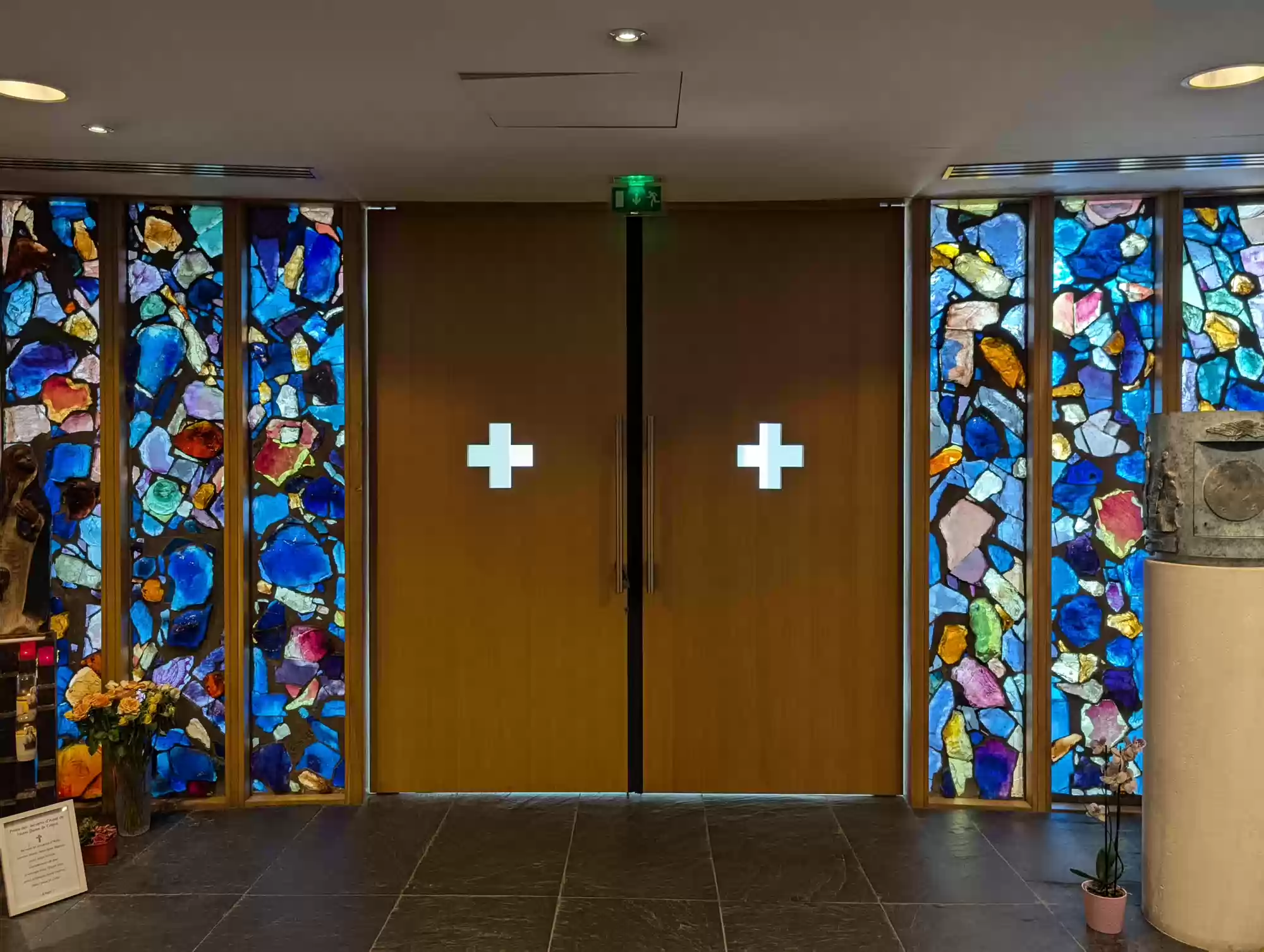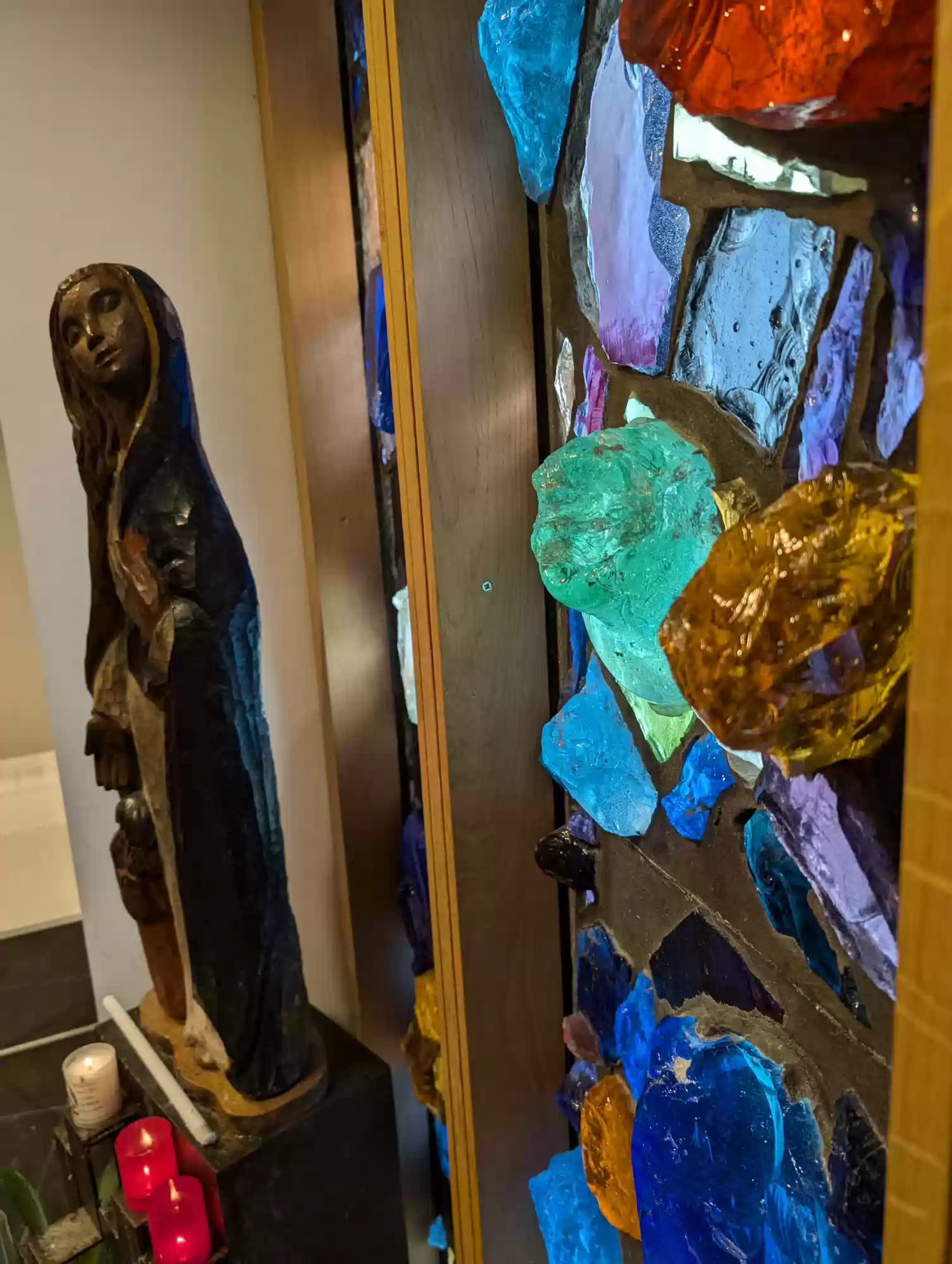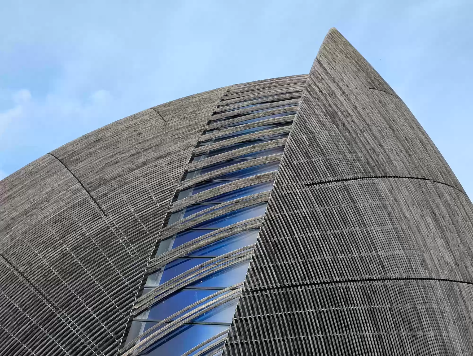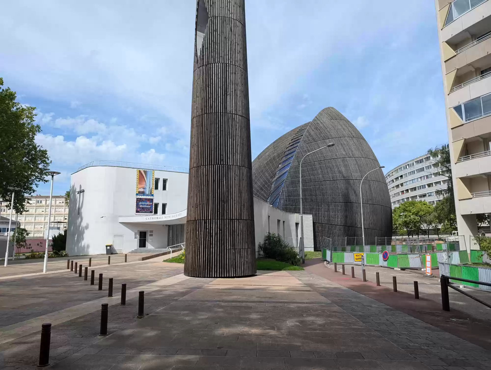 Cathedral built in 2015, replacing the previous 1976 church (then cathedral in 1987). Steeple. Wooden shell. Wooden shell. Wooden shell. Labels