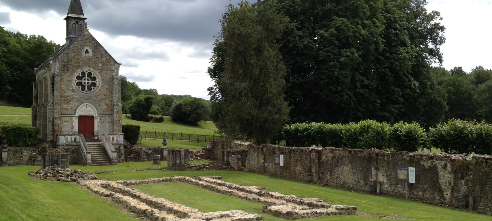 Location of the former abbey, a gothic church built in the 13th century. A neogothic oratory was built on top of the former apse of the abbey in 1891.