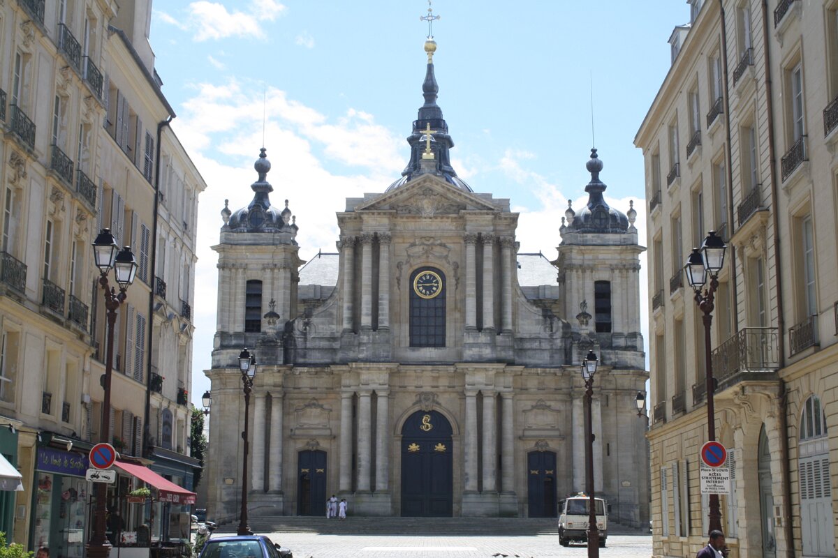 Saint-Louis church, erected by Mansart and Sagonne between 1743 and 1754. It became a cathedral in 1802. Square in front of the cathedral. Nave. Nave. Altar and bishop chair. Organ. Chapel. Chapel. Reliquary, 19th century, ebony, shell, gilded metal. Monstrance, second half of the 18th century. Palace Labels