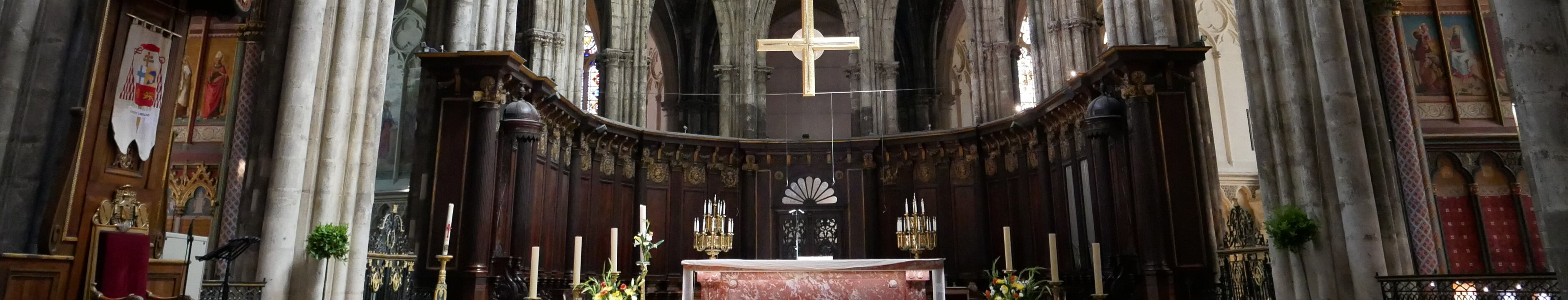 Nave, 2nd half of the 12th century. Nave, 2nd half of the 12th century. Choir, 1310-1330. Choir, 1310-1330. Choir. Saint Andrew. Saint Andrew. Mount Carmel chapel, wall paintings from 1861-1862. Mount Carmel chapel, wall paintings from 1861-1862. Mount Carmel chapel, wall paintings from 1861-1862. Saint Margaret chapel. Sacred heart chapel. Pey Berland tower Labels