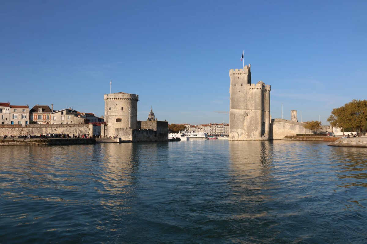Towers47 images Fortified entrance of the old harbour. Grosse horloge tower, 12th century, top added in 1478. Grosse horloge tower. Grosse horloge tower. La CoursiveHenri II house Labels