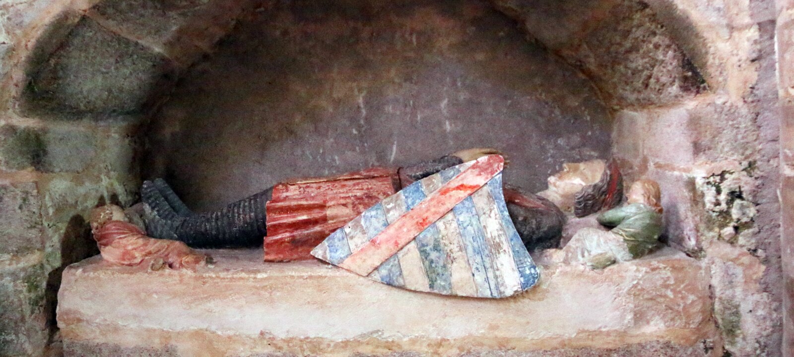 Sainte-Croix church, 11th century, tower from the 15th century, new facade from the late 18th century. Sainte-Croix church, 11th century, tower from the 15th century, new facade from the late 18th century. Sainte-Croix church, 11th century, tower from the 15th century, new facade from the late 18th century. Holy water font made with a giant clam. Labels