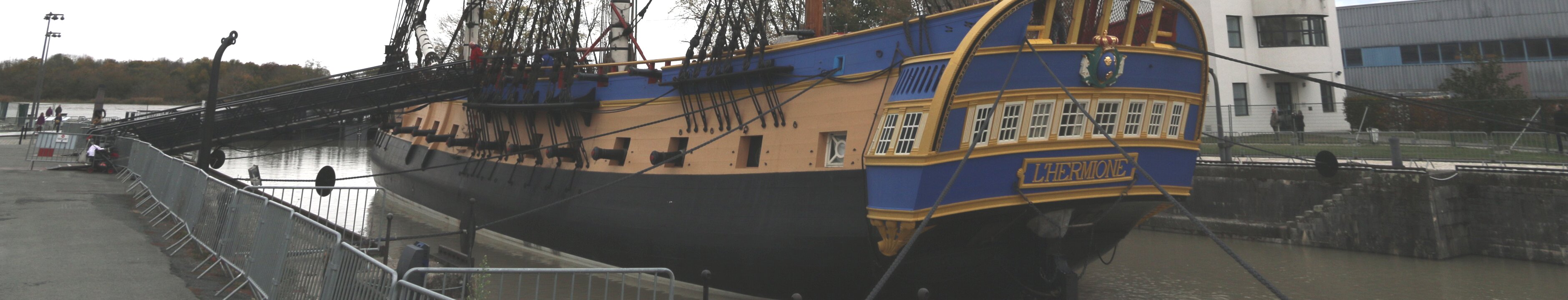 Hermione43 images Building area. Rochefort is around 10km from the sea; boats were launched on the Charentes river before they could reach the Atlantic ocean. Royal rope factory (corderie royale) Labels