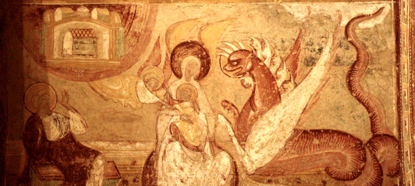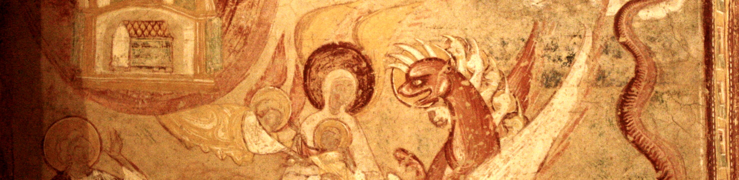 The fight of the kings, 12th century fresco originally located in the nave of the church. Abraham and his army, on the left side, are opposing the army of 4…