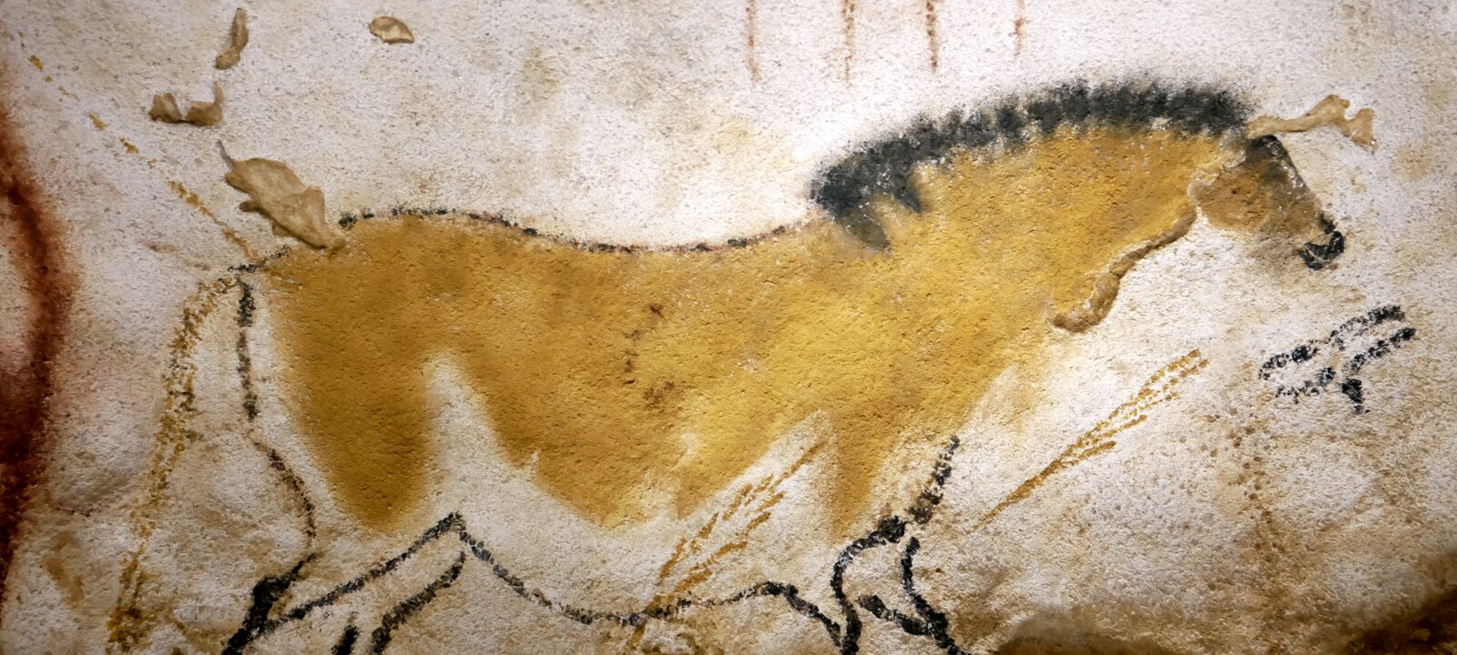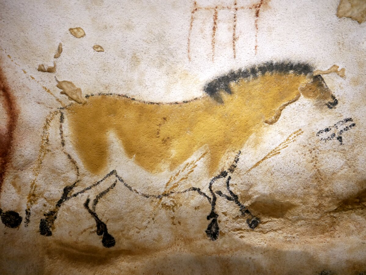 Lascaux IV, a replica of the Lascaux cave inhabited 20000 years ago and accidentally discovered in 1940 famous for its many prehistoric paintaings. Pigments used to paint the walls of the cave. Tools used to paint the walls (replicas). Animal paintings. Half of the hundreds of animal paintings were found at a single location in the cave. Natural light. Laugerie basseReignac Labels