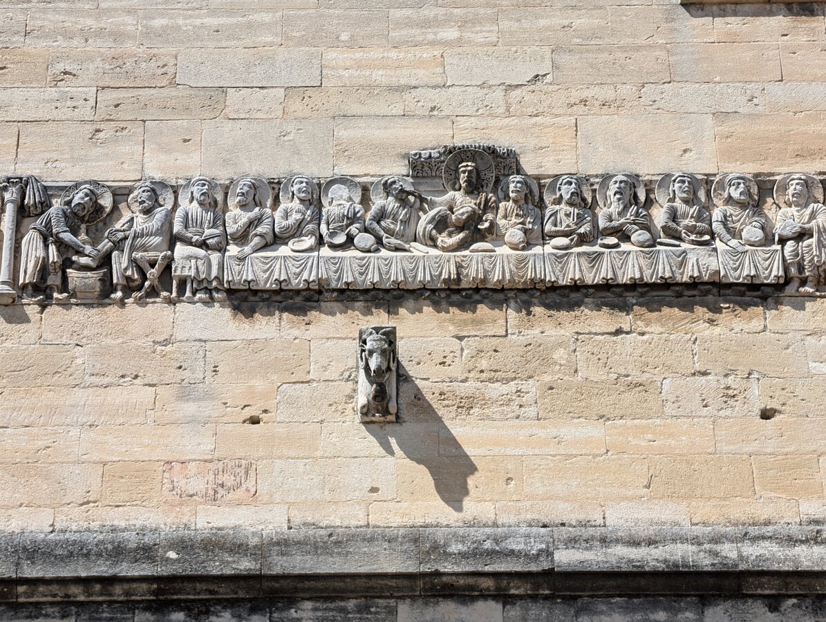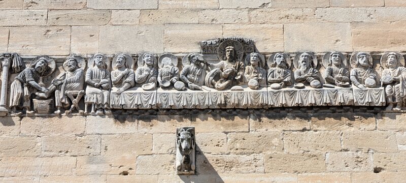 Church, 18th century, with a 12th century frieze from a former church. Frieze, 12th century. Frieze, 12th century. Frieze, 12th century. Frieze, 12th century. CastleSaint-Roman Labels