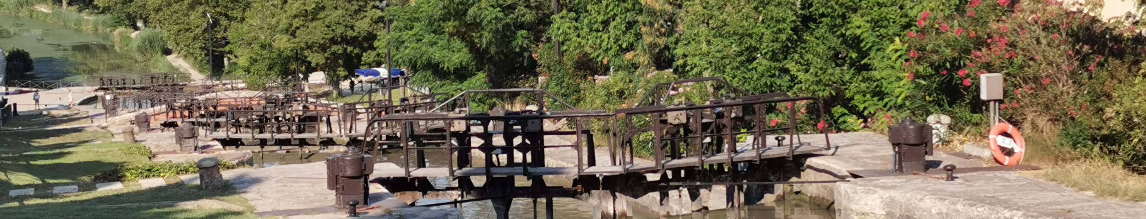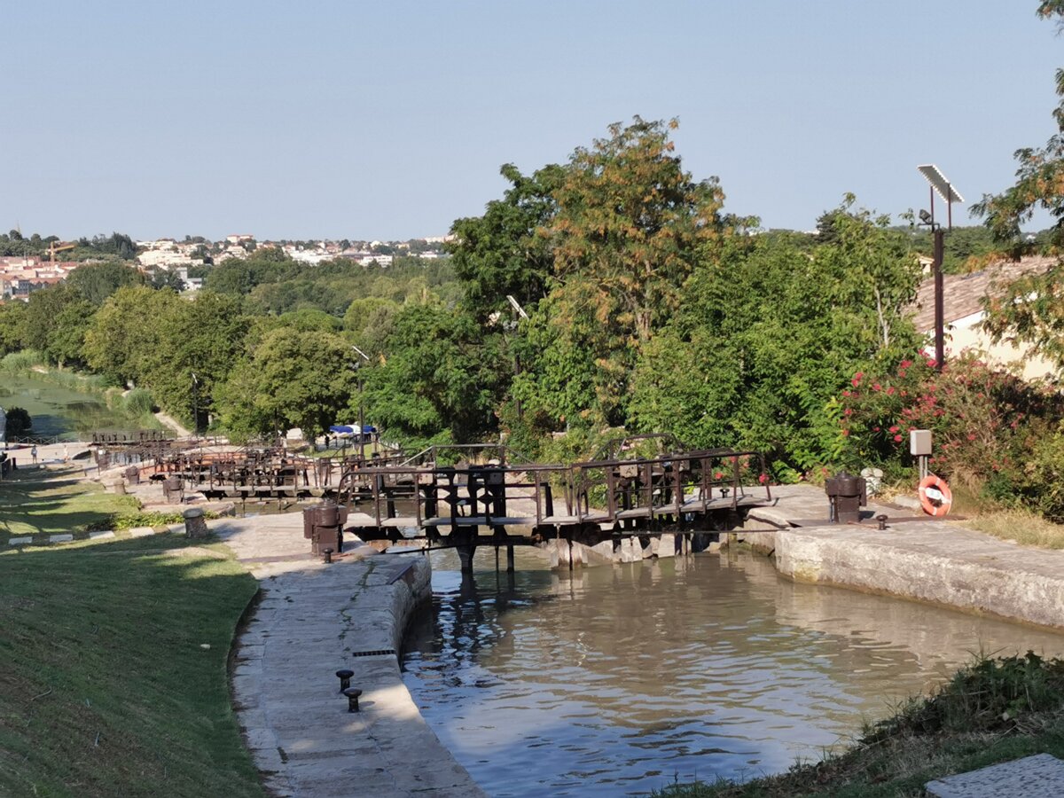 Canal du midi, built in the 17th century between Toulouse and the Mediterranean sea, 241 km. In Béziers, the Fonseranes set of 8 locks allow to climb…