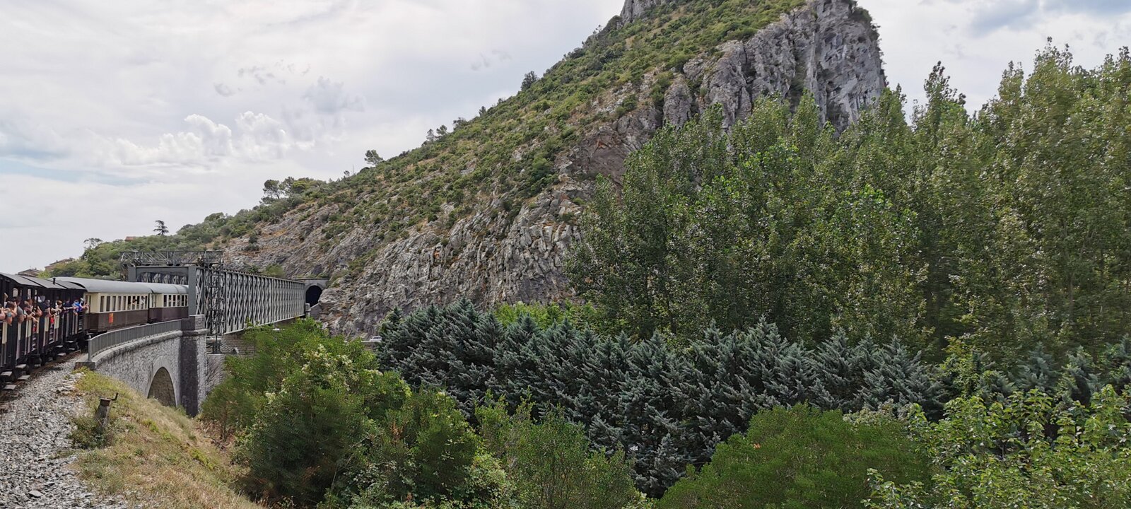 Cévennes train18 images Protestant temple. Market square. Market square. Market square. Vases of Anduze. AlèsBambouseraie Labels