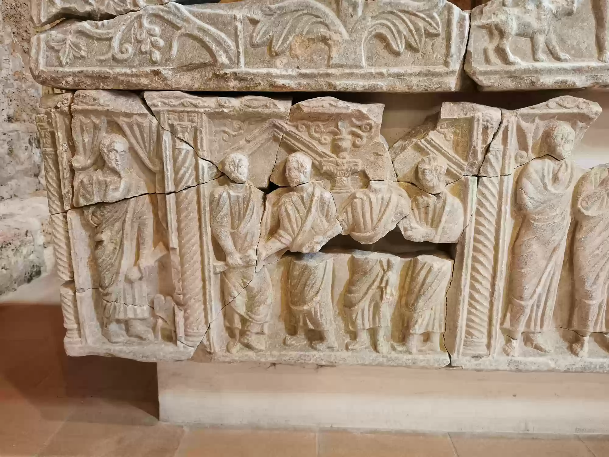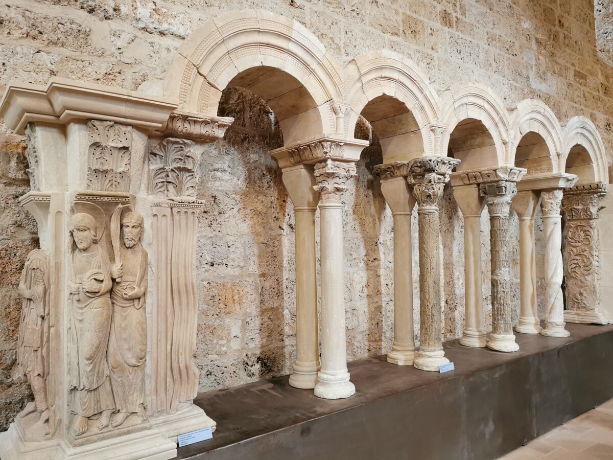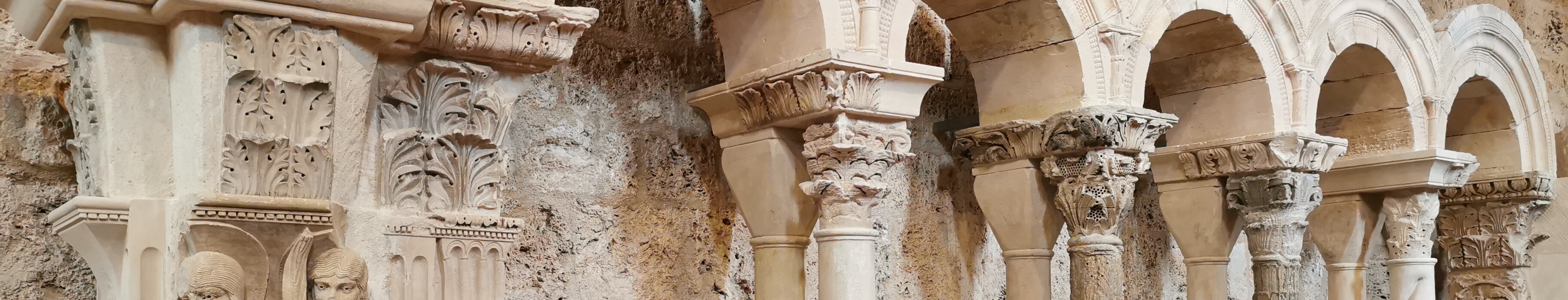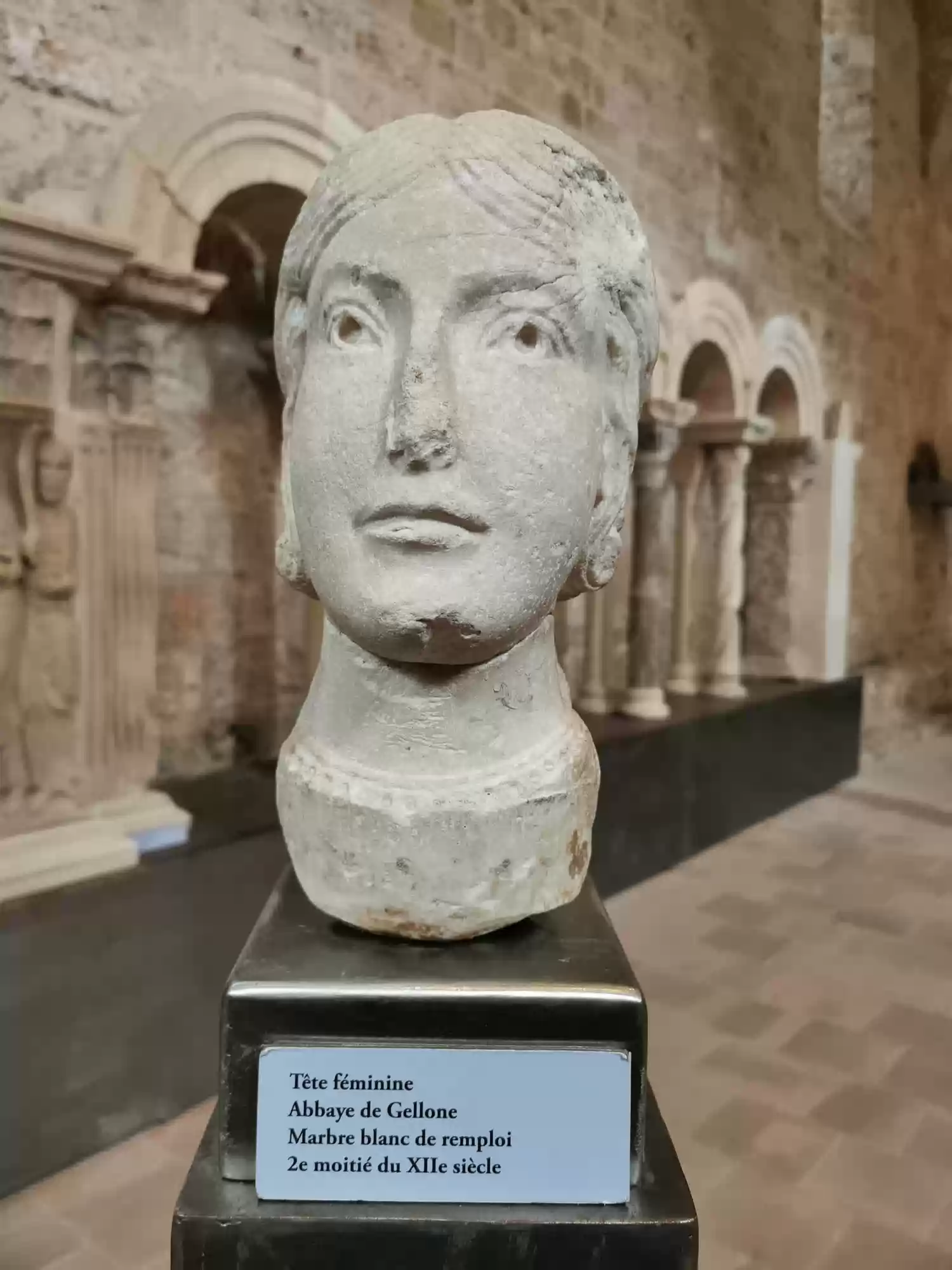 Roman empress, 1st century AD. Female head, second half of the 12th century. Elements of the cloister, ca. 1200. Elements of the cloister, ca. 1200. Elements of the cloister, ca. 1200. Elements of the cloister, ca. 1200. Element of the cloister, late 13th century. Element of the cloister, late 13th century. Elements from the pre-romanesque church, 9-10th centuries. Sarcophagus of Saint Guilhem, marble, 4th century, recut ca. 1200. Sarcophagus of Saint Guilhem, marble, 4th century, recut ca. 1200. Sarcophagus of Albane and Bertrane, marble, 5th century? Sarcophagus of Albane and Bertrane, marble, 5th century? Capital, 1st-2nd century AD. Cloister Labels